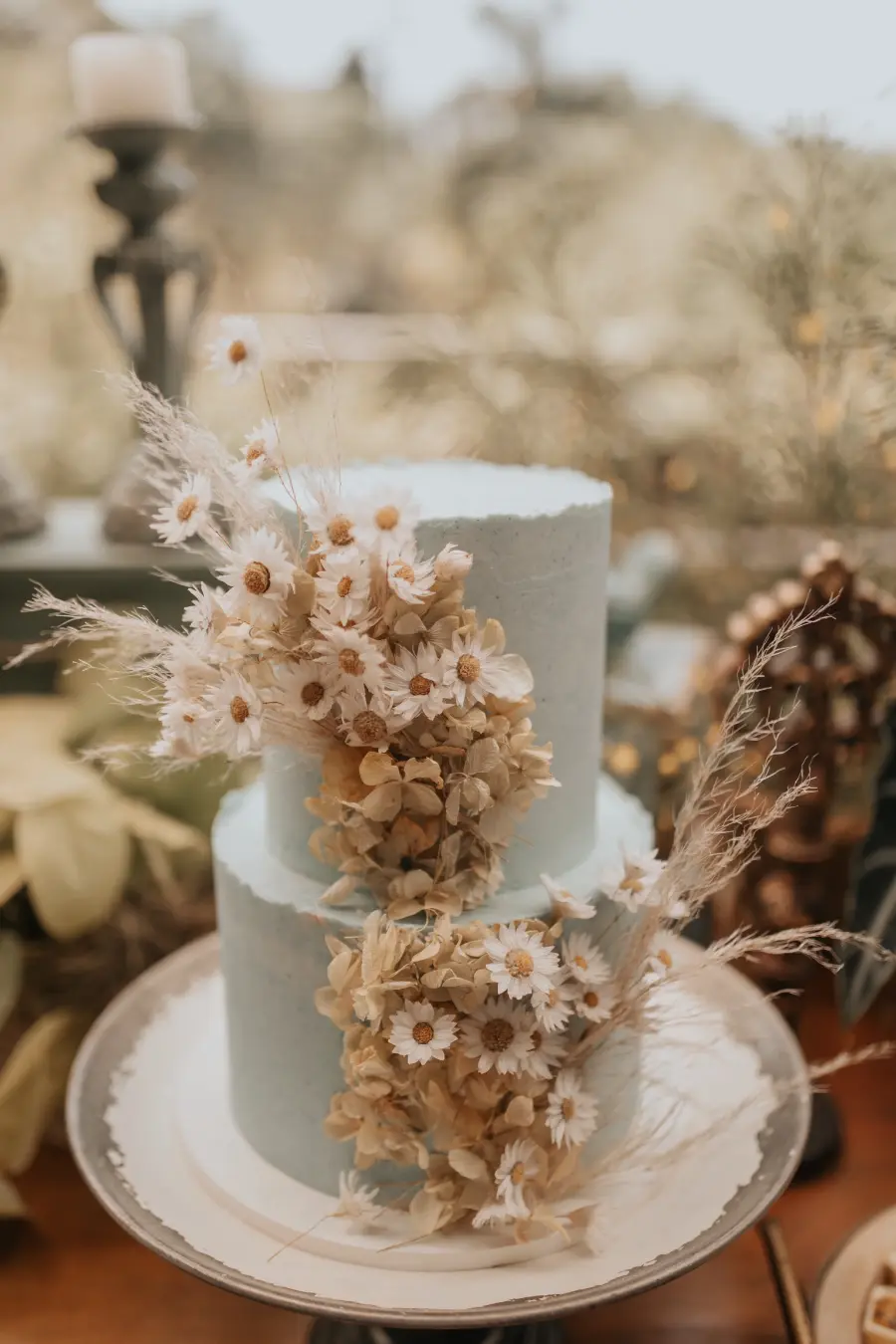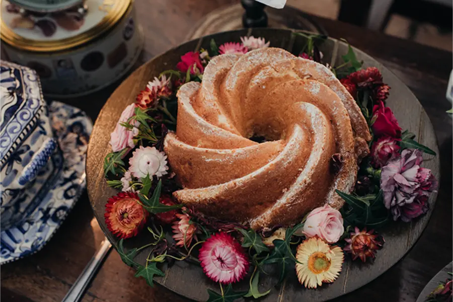 Também é possível servir mais de um bolo, em tamanhos diferentes, criando uma mesa variada e acessível.