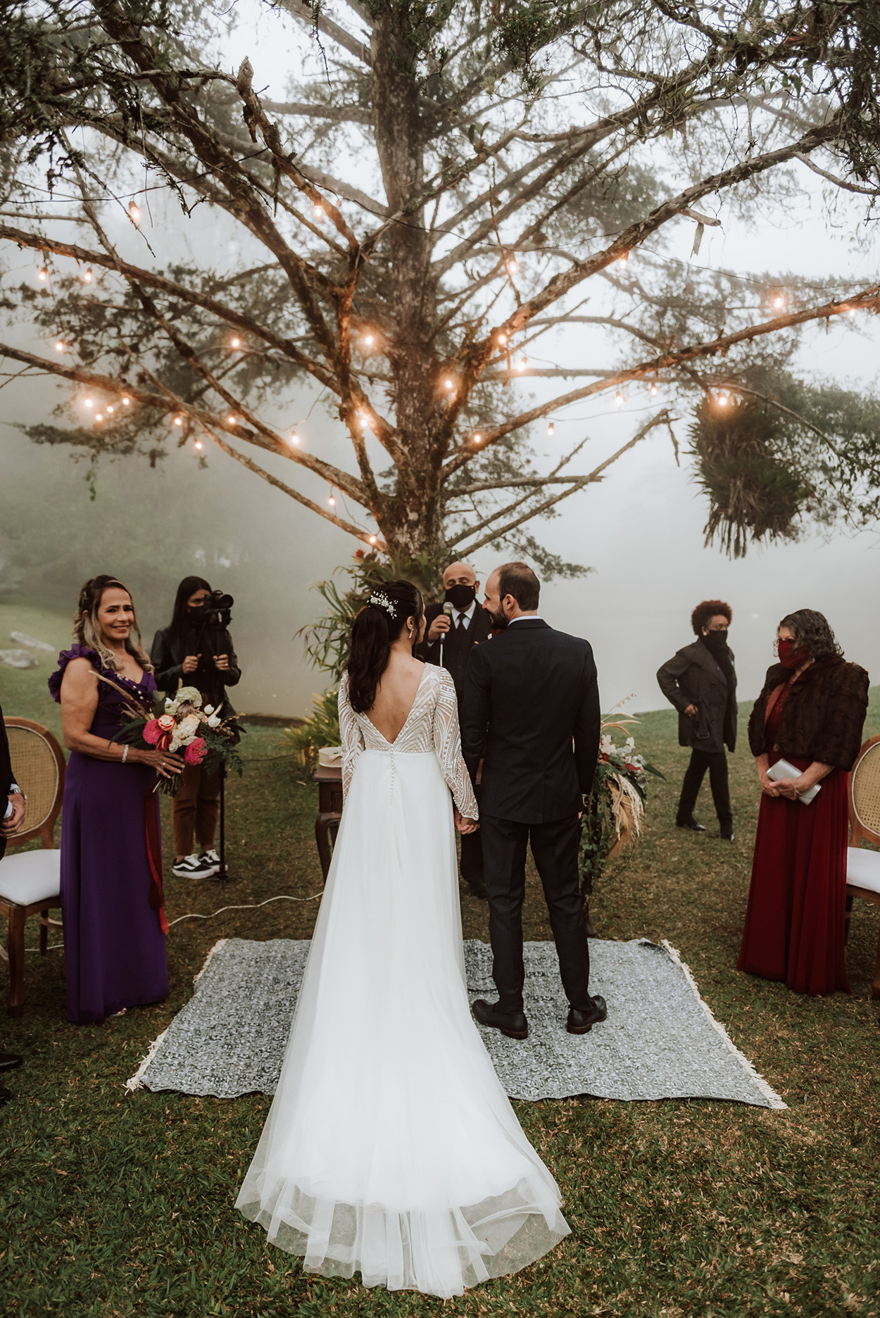 A Vanessa comenta não deu tempo de comprar os guardas chuvas transparentes e como a neblina era forte e estava muito frio, os convidados ficaram no “chuvisco”. Mesmo com esse contratempo, eles tiveram uma celebração intimista cercada por seus amigos e familiares mais próximos.