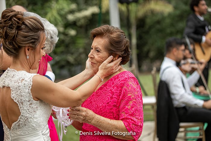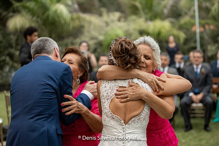Um dos detalhes especiais foi a entrada da Cristina com seu pai. Na metade do corredor ouve uma troca de pai para o filho para acompanhar a mãe até o altar. As daminhas merecem um destaque especial, eram as mães dos noivos!