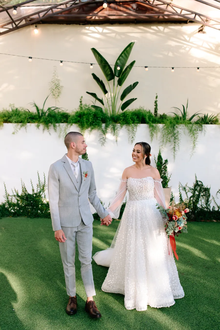 “Personalizamos tudo. Até o cardápio teve nossa pegada: eu sou vegetariana, ele ama carne. E teve opção pra todo mundo.”