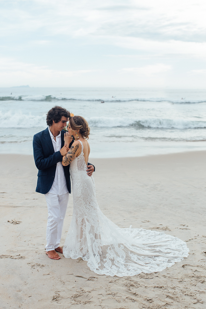 A Izabella e o Victor moram fora do Brasil. Para celebrar seu amor com as pessoas mais queridas de suas vidas, escolheram uma praia no litoral norte de São Paulo, em uma tarde ensolarada e alegre.