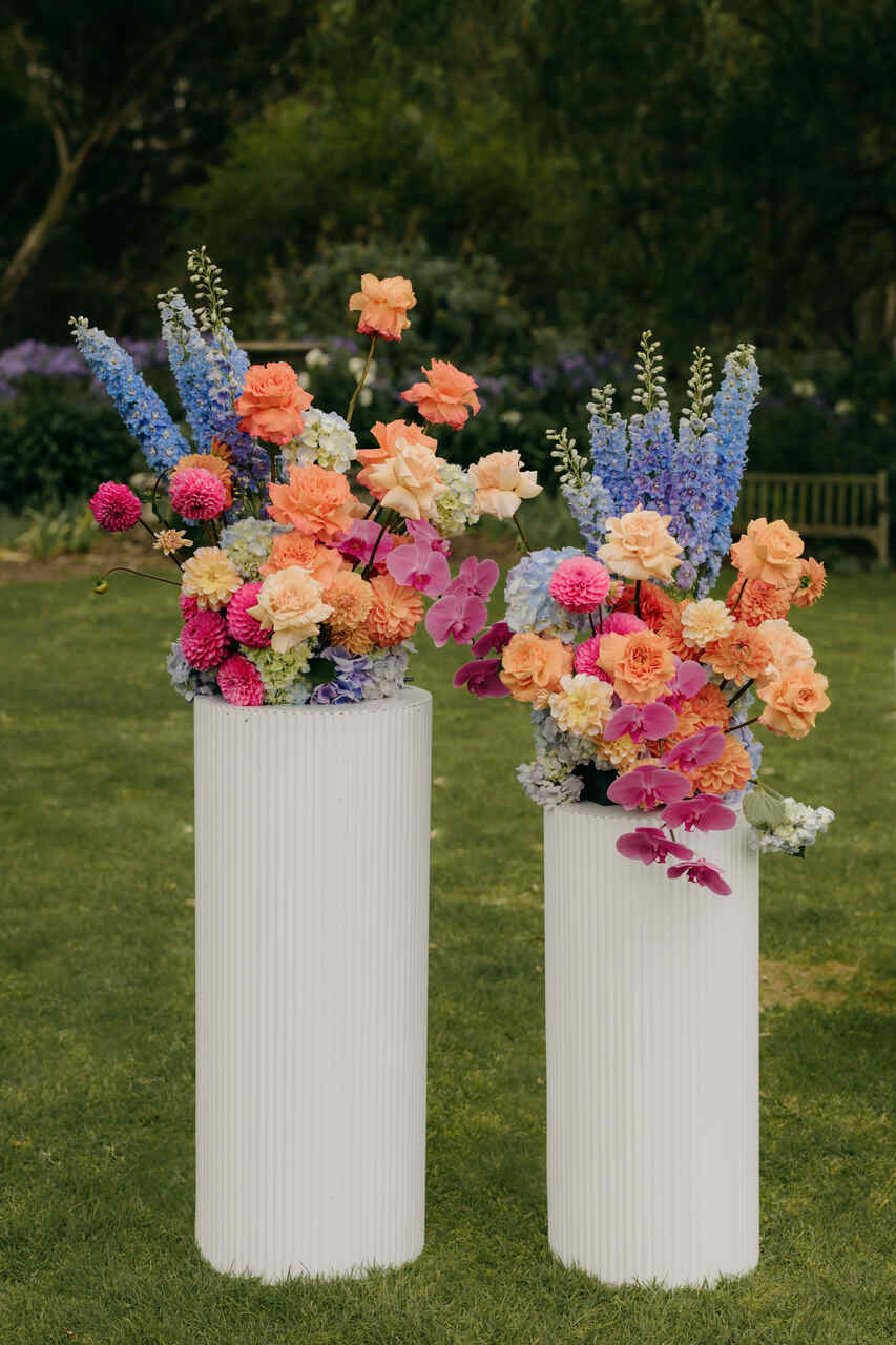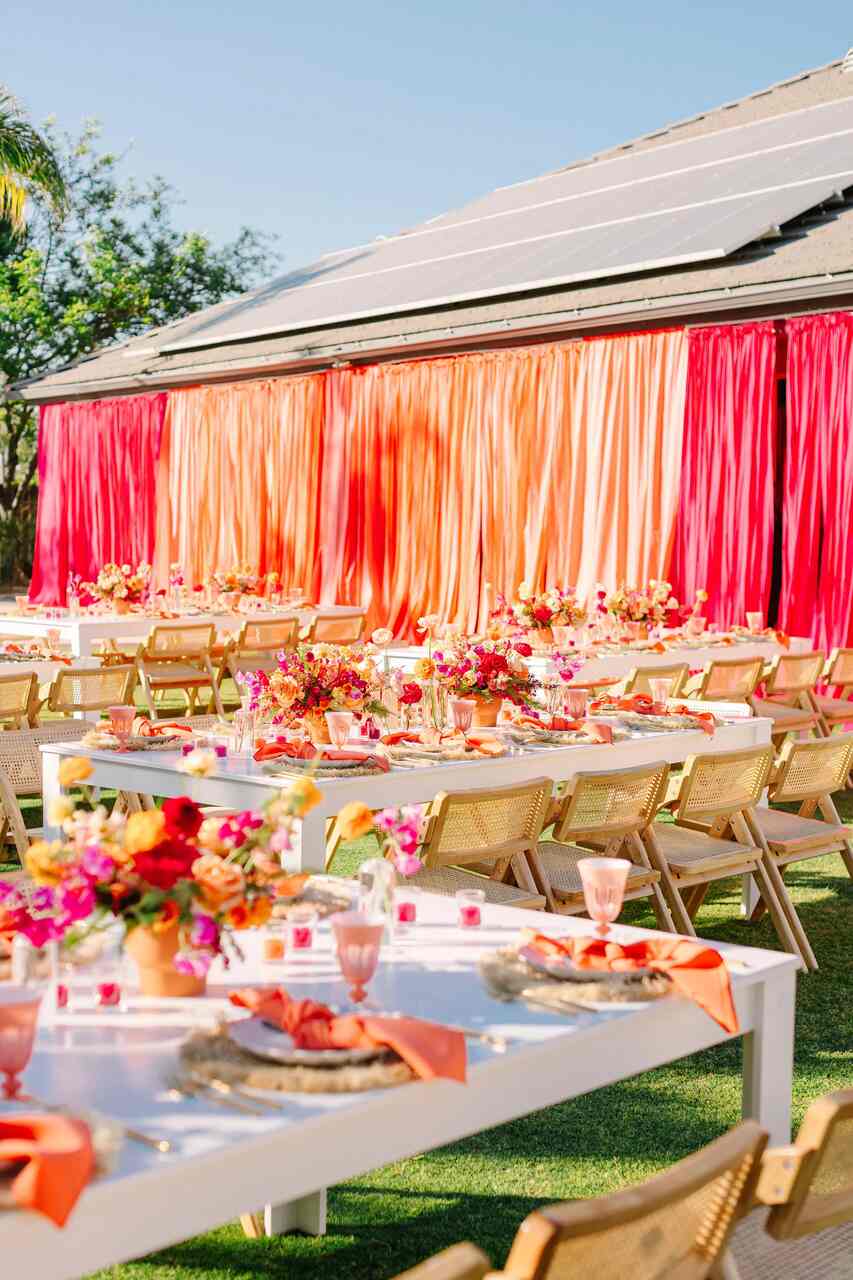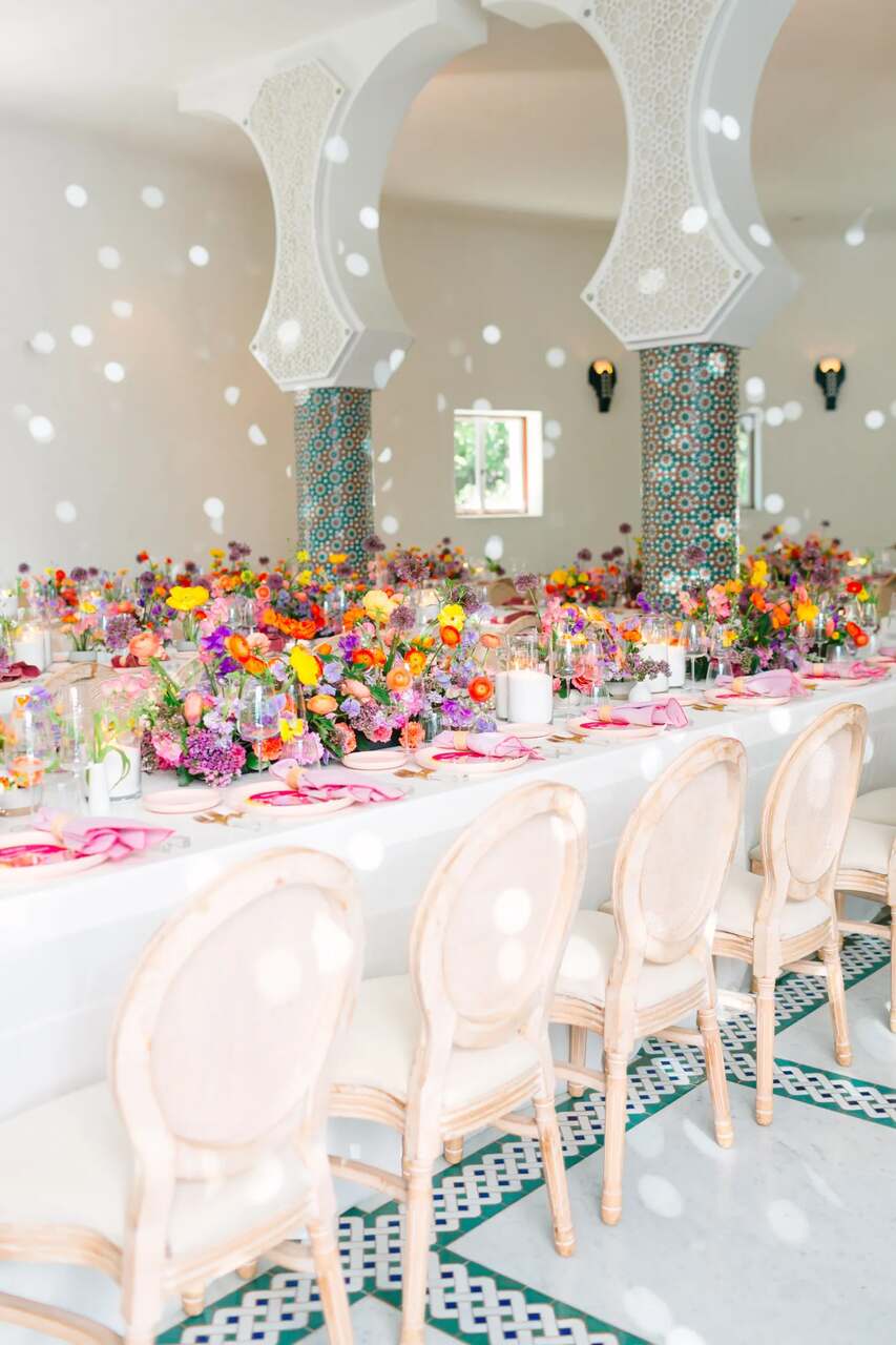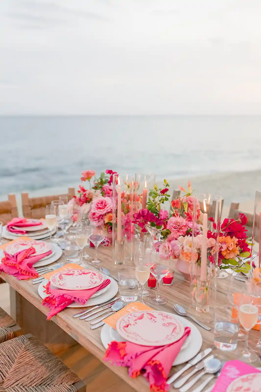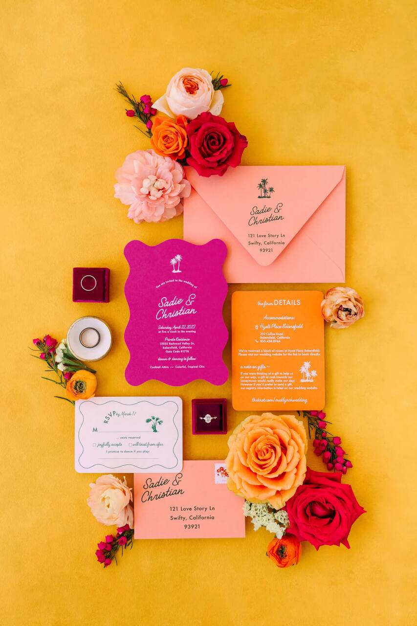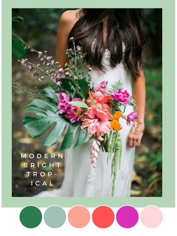 Os casamentos tropicais são marcados por cores vivas e alegres, como tons de verde, amarelo, laranja, coral, rosa e azul-turquesa. Na paleta de cores para casamento, o uso de cores neutras, como branco, bege, cores pastel e até preto, serve como base para destacar os elementos mais coloridos.