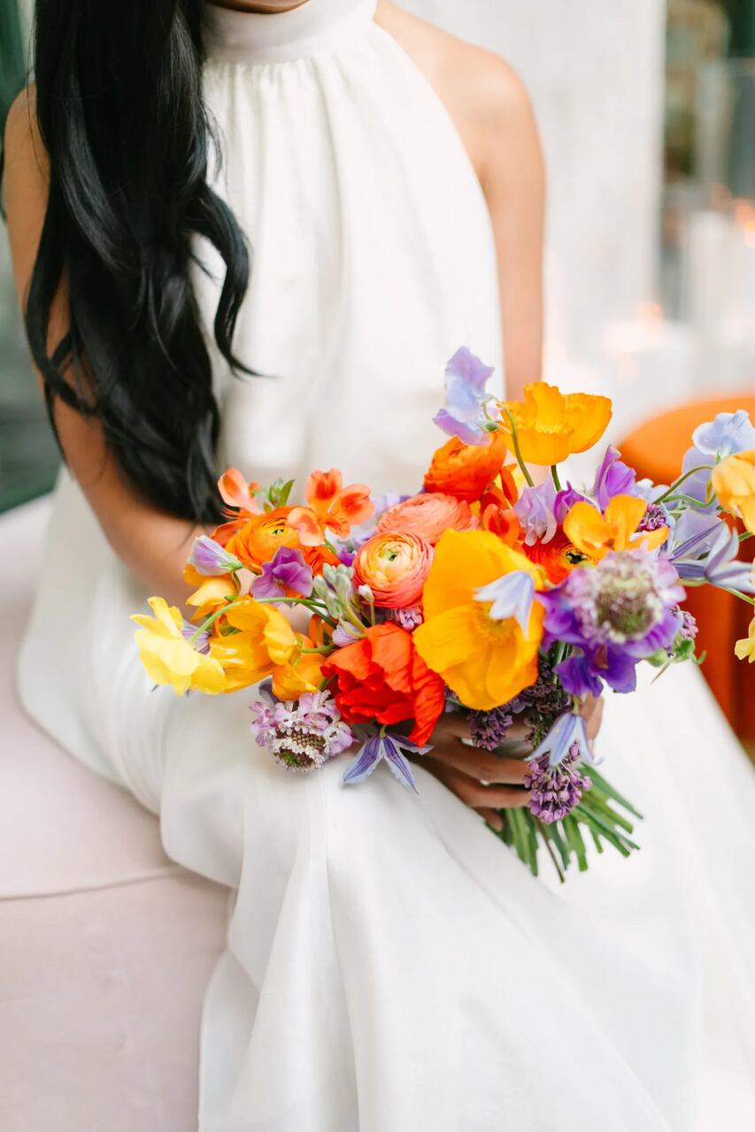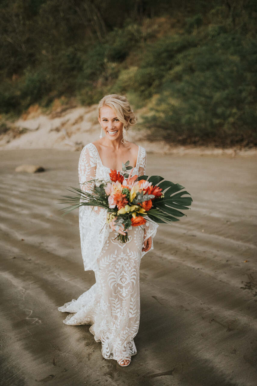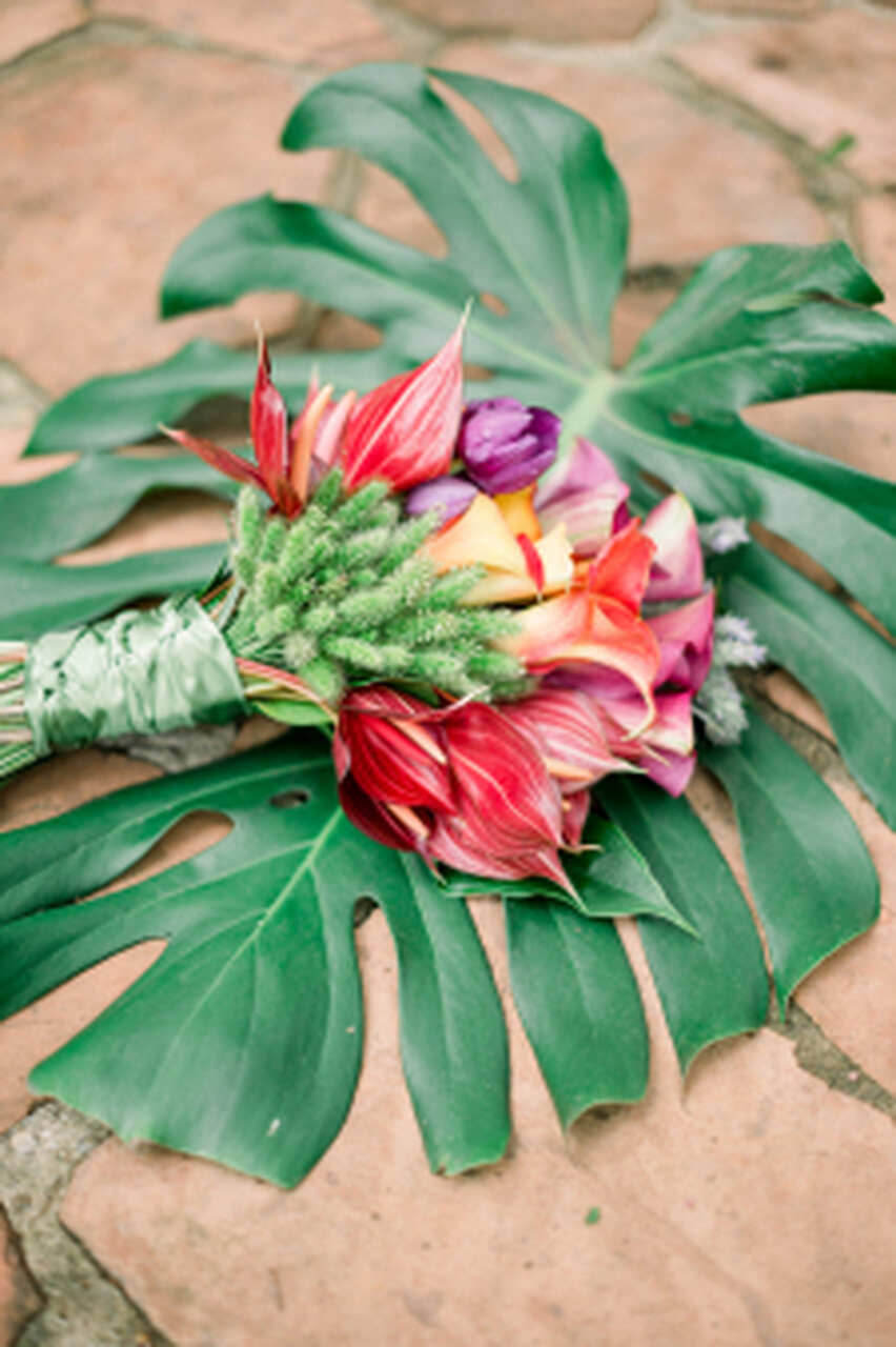 Nem precisamos falar que o buquê de noiva é quase uma joia que compõe o look, né? No casamento tropical, os buquês acompanham até onde a criatividade levar. Esse estilo permite que a noiva mescle flores exóticas e cores vibrantes.