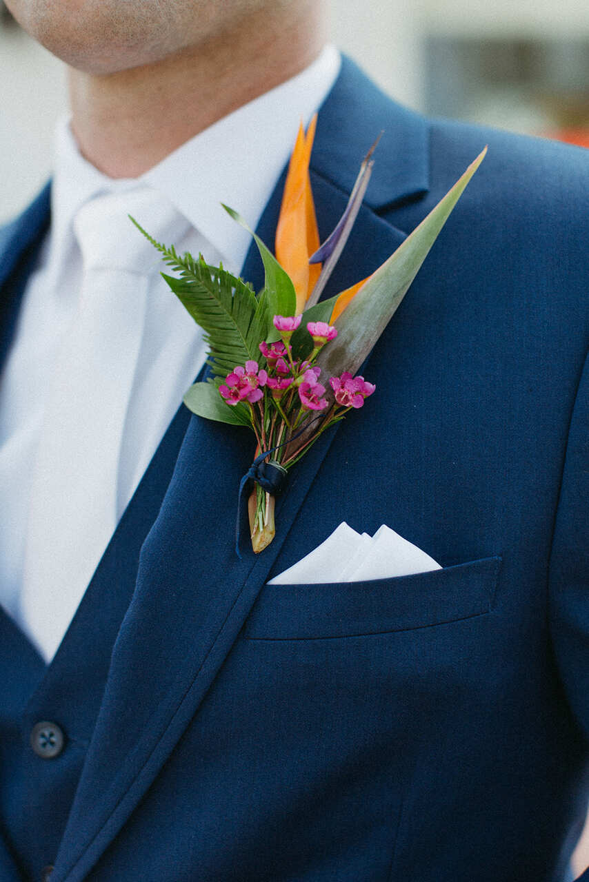 Os acessórios ajudam a complementar a ideia do casamento tropical!