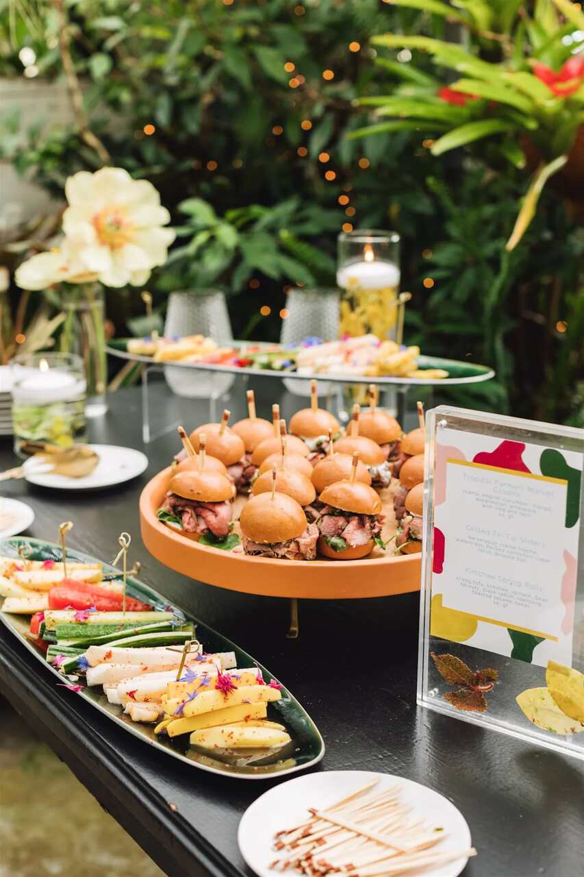 O cardápio de um casamento tropical é pensado para ser leve e refrescante, entendendo que este estilo é escolhido principalmente para celebrações em climas quentes.
