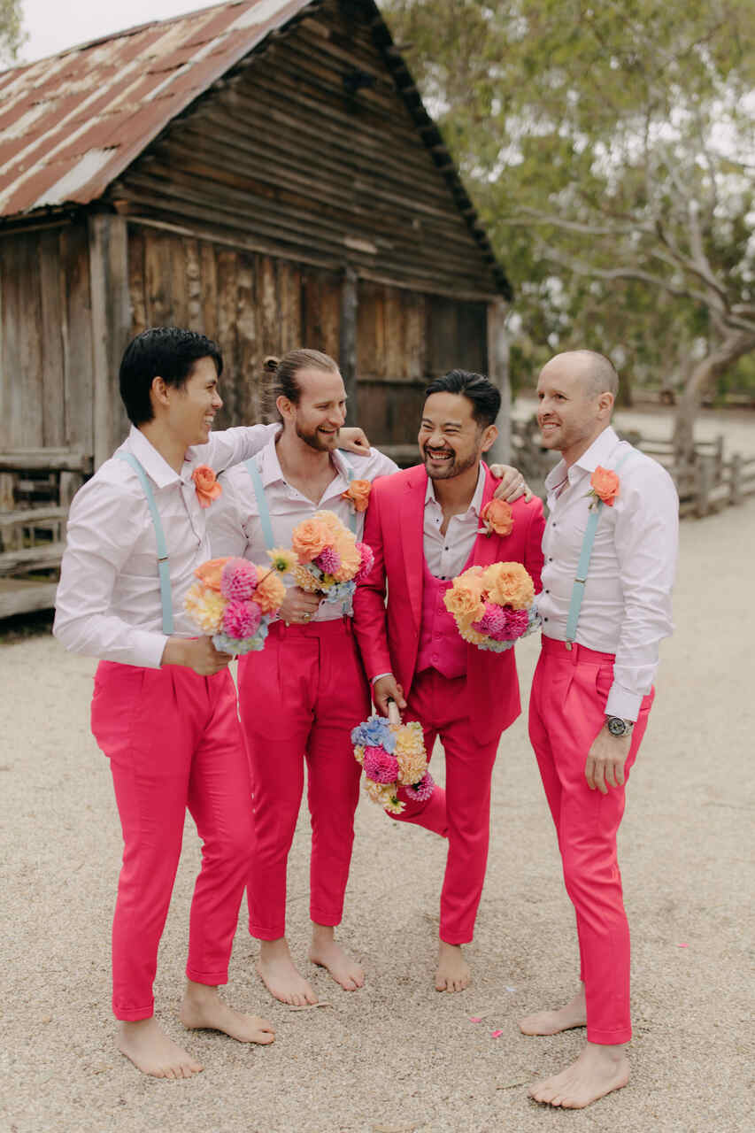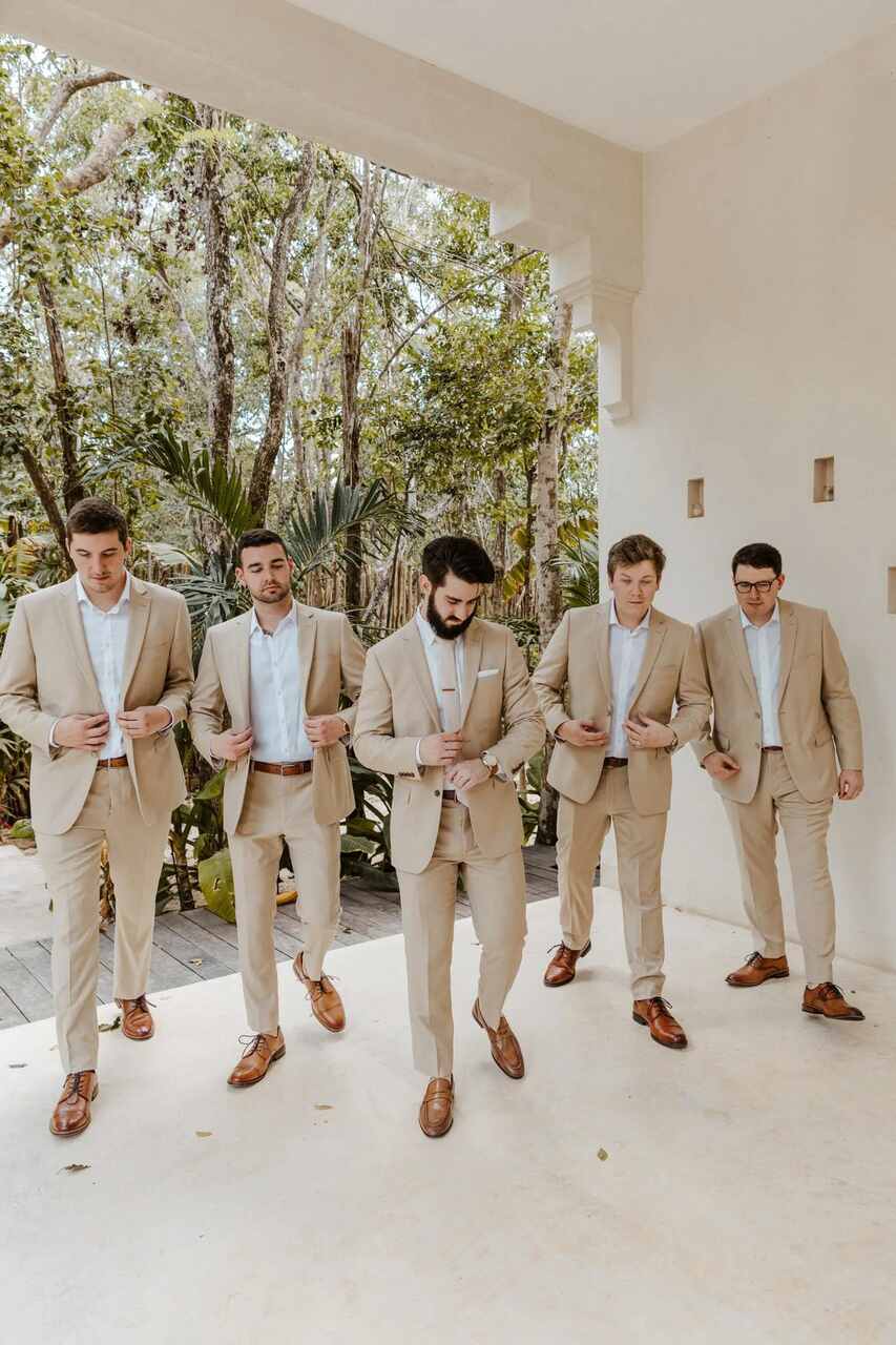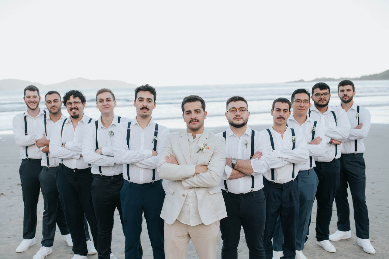 Os padrinhos e madrinhas de casamento podem seguir o mesmo estilo, com roupas leves e tons harmoniosos que complementem a paleta escolhida pelos noivos.