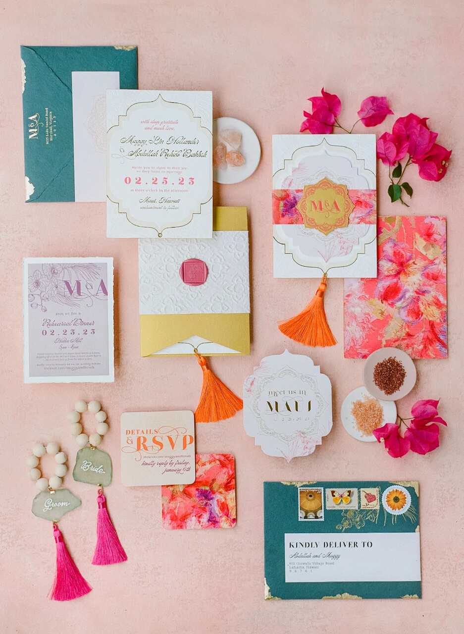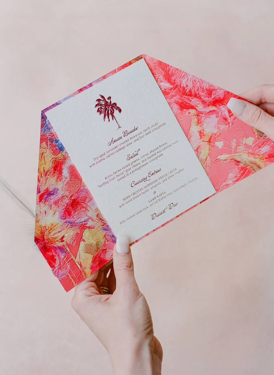 A papelaria de um casamento tropical é encantadora! Ela tem o poder de transmitir a vibe boa do grande dia, desde os convites de casamento até os menus, plaquinhas e outros itens podem trazer elementos tropicais.