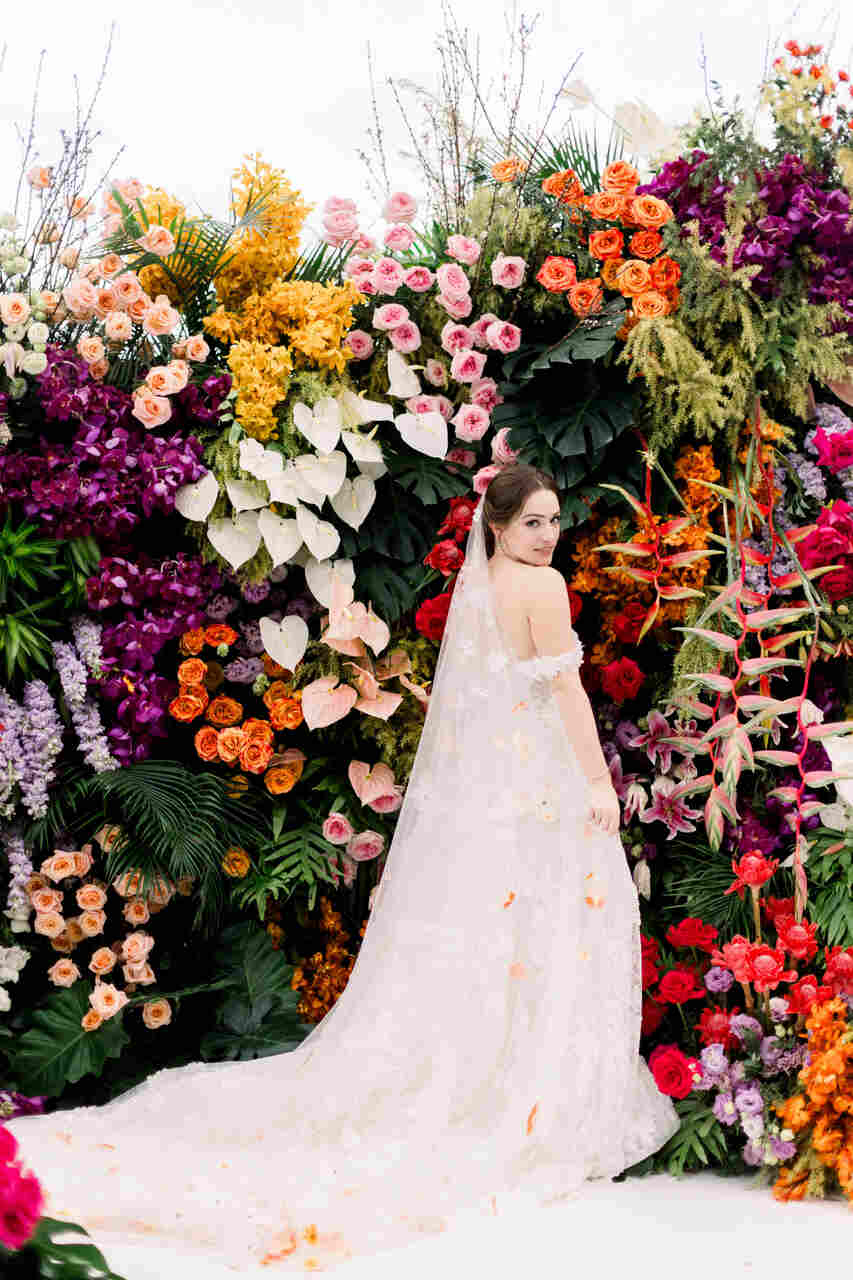 Nem precisamos falar que o buquê de noiva é quase uma joia que compõe o look, né? No casamento tropical, os buquês acompanham até onde a criatividade levar. Esse estilo permite que a noiva mescle flores exóticas e cores vibrantes.