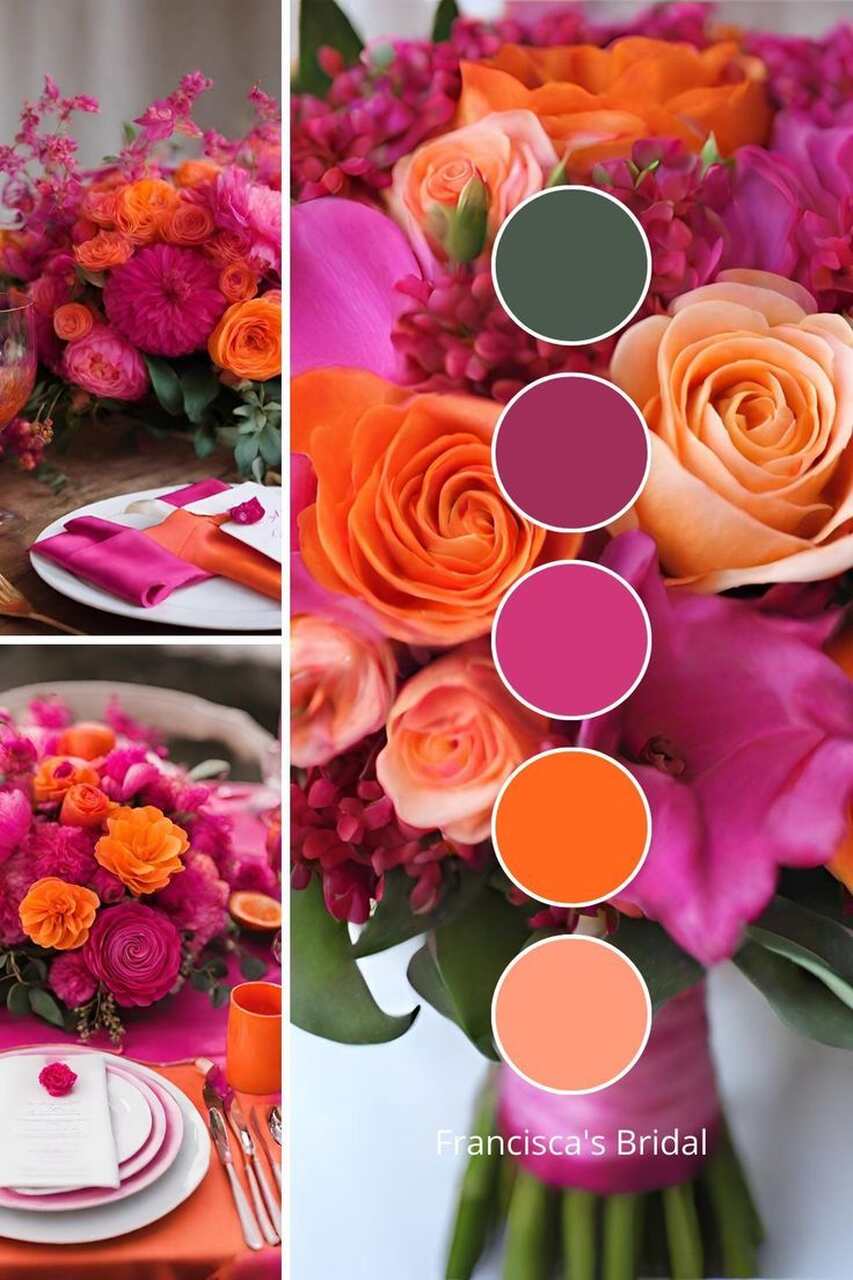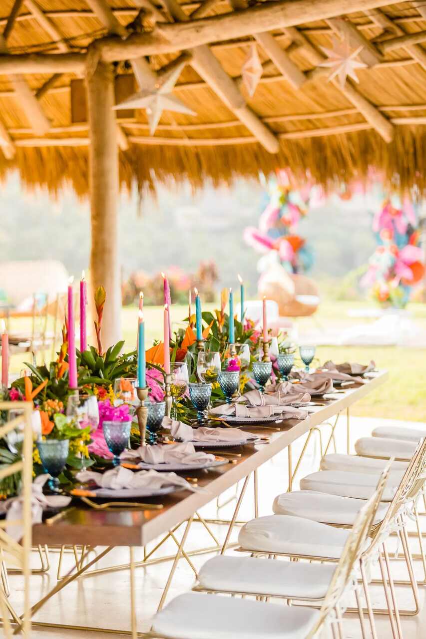 Os casamentos tropicais são marcados por cores vivas e alegres, como tons de verde, amarelo, laranja, coral, rosa e azul-turquesa. Na paleta de cores para casamento, o uso de cores neutras, como branco, bege, cores pastel e até preto, serve como base para destacar os elementos mais coloridos.