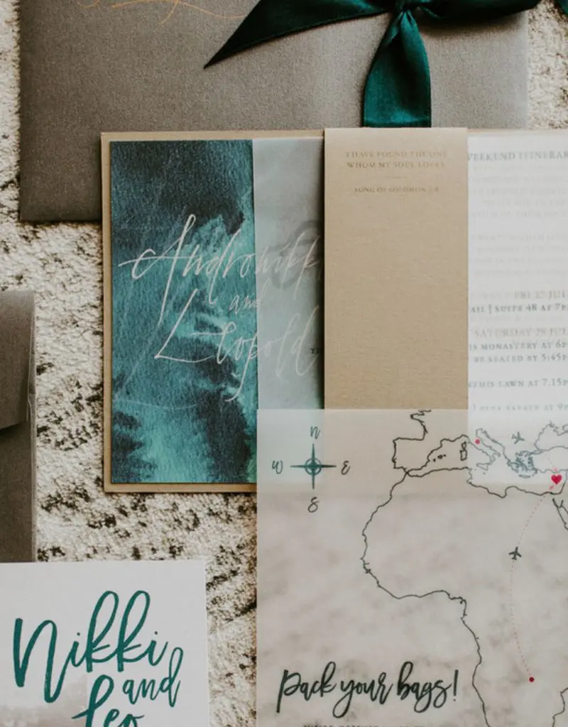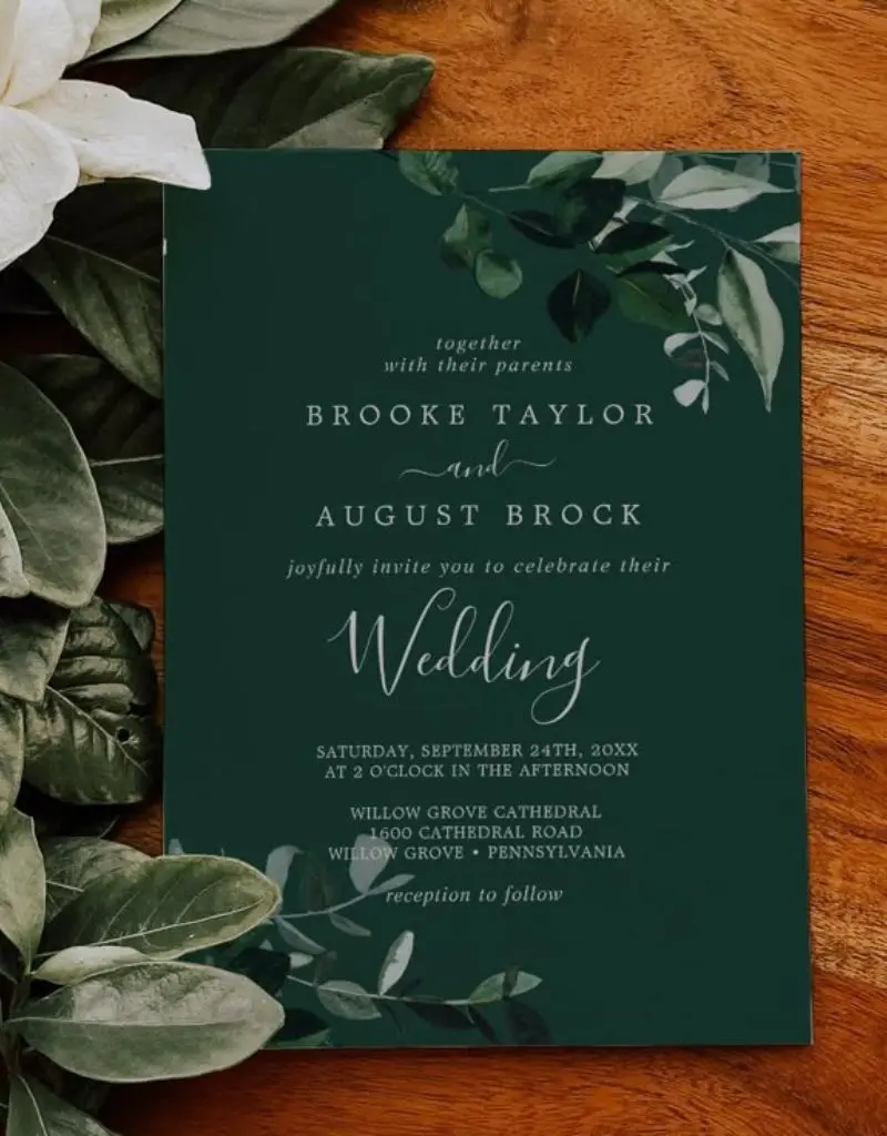 No caso do verde esmeralda, os convites podem seguir diferentes caminhos: