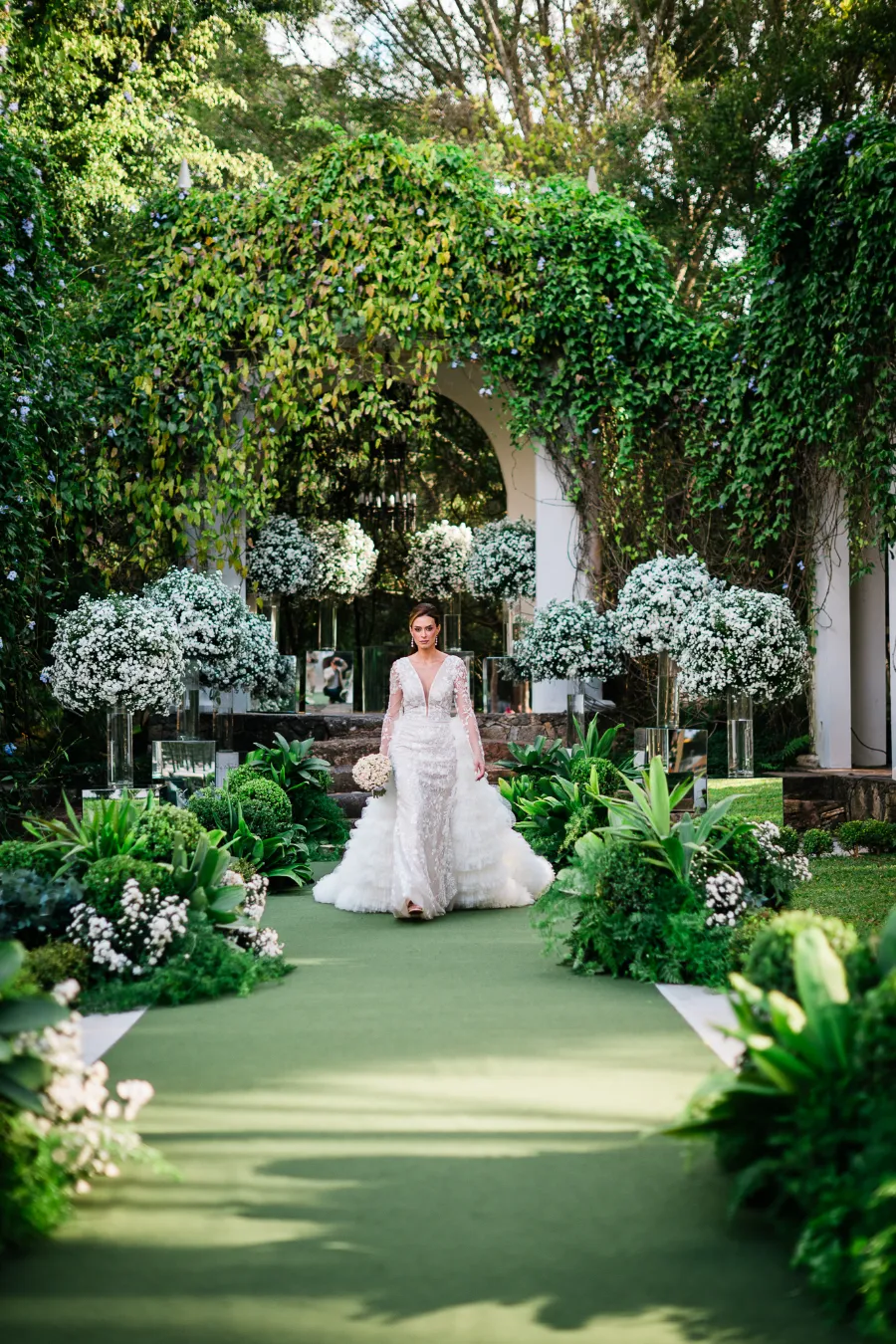 Exemplo real: o casal decidiu deixar a cor para a decoração e madrinhas, por isso trouxemos outras inspirações.