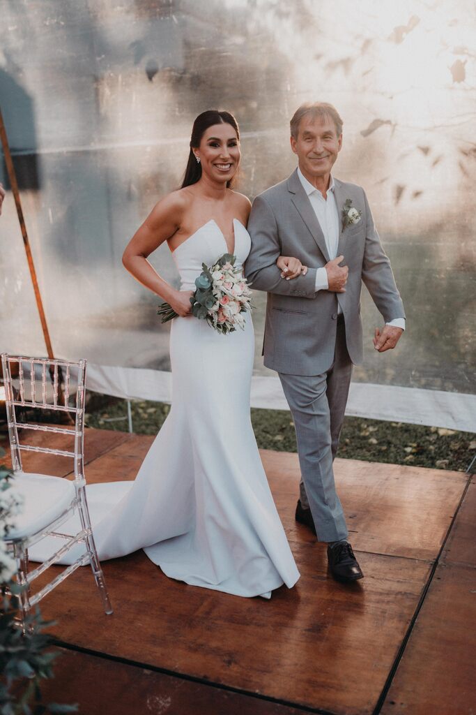 O casal decidiu que queria se arrumar no conforto de casa, então ela se preparou na casa dos pais, ao lado das pessoas mais importantes. Enquanto o Bruno se arrumou na casa dos dois, juntos dos homens da família dele e da noiva.
