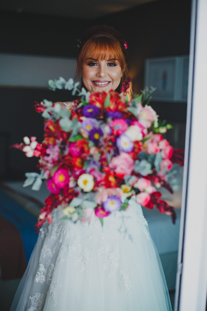 “Se programem com bastante antecedência, ficamos noivos um ano (o que deu bastante tempo pra finalizarmos tudo com antecedência) porém na semana antes do casamento ainda tínhamos muitos detalhezinhos adicionais que só aparecem em cima da hora e que você quer adiciona-los nesse dia tão importante.