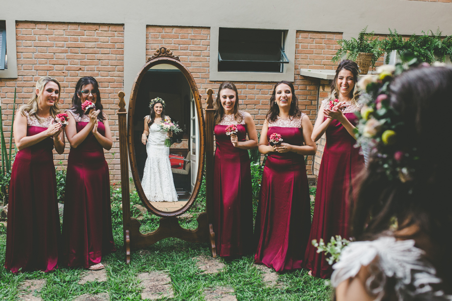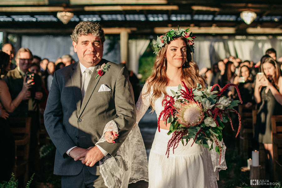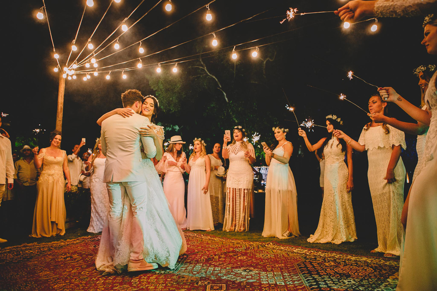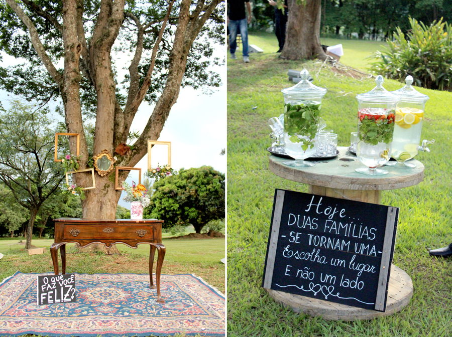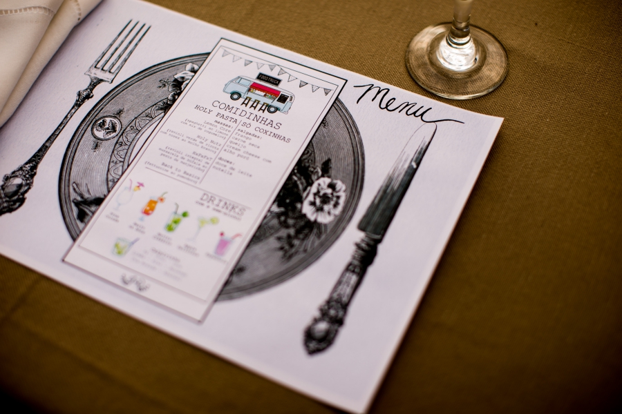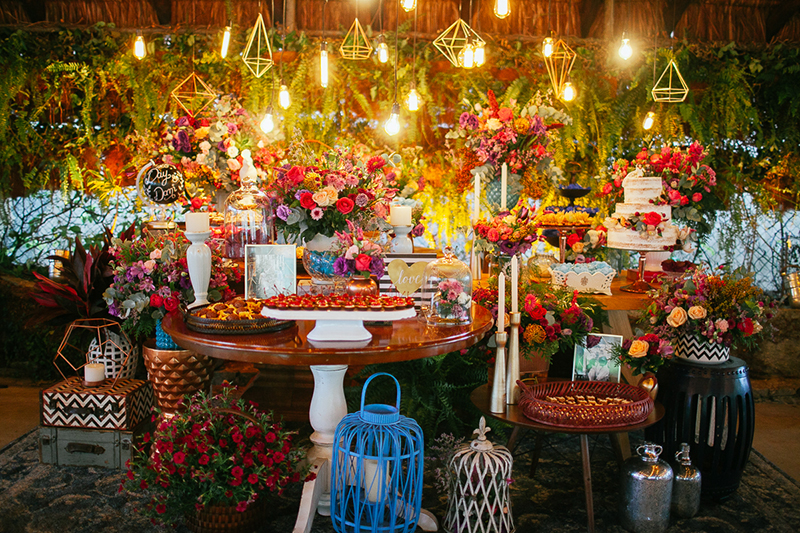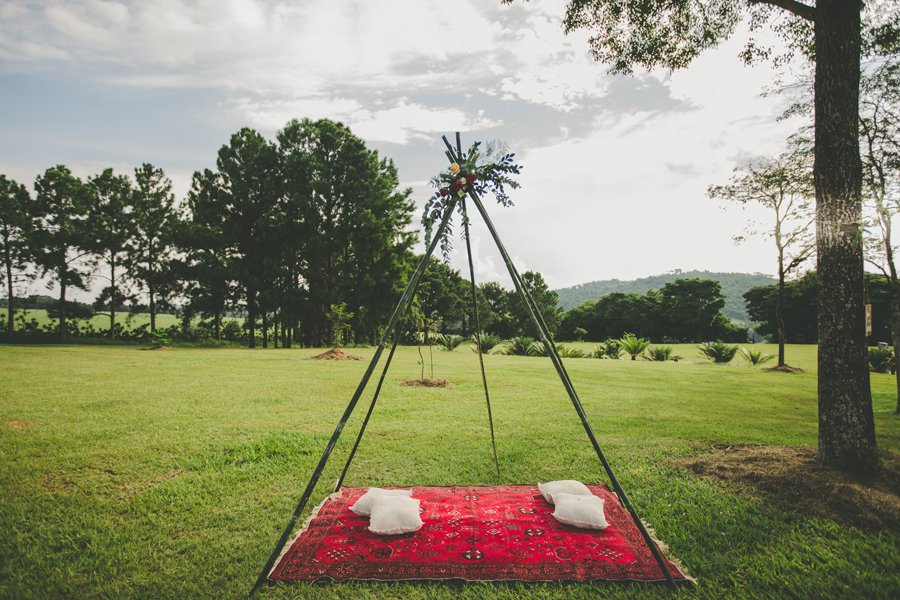 A Jak pesquisou muito antes de escolher que proposta seguir para o seu casamento. Cruzou referências e acabou optando em seguir uma proposta de casamento boho, mais precisamente: boho indie, que formatou todo o estilo do casamento. O clima informal combinou perfeitamente com o cardápio, que foi servido através de foodtrucks espalhados pelo local.