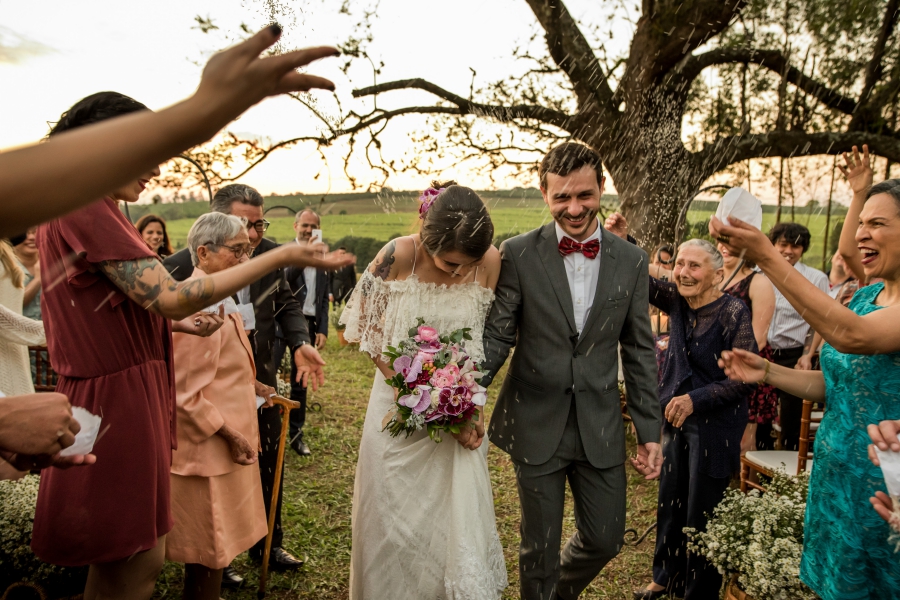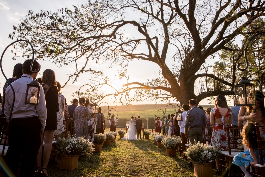 A Mariana sempre teve o sonho de se casar no campo, com uma cerimônia ao ar livre, sob o céu aberto, em meio à natureza, mesas espalhadas pelo gramado e clima aconchegante. Conseguiu realizar o seu sonho e teve um casamento mais que especial com decoração super inspiradora e muitos momentos inesquecíveis.