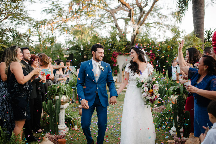 A Lívia e o Adriano sonhavam com uma celebração que realmente refletisse a sua personalidade. Assim, escolheram se casar em um jardim, ao ar livre em meio à natureza, em um local com clima rústico/vintage. A Lívia conta que acompanharam de perto cada decisão, principalmente na decoração pois queriam criar uma atmosfera alegre, colorida e leve.