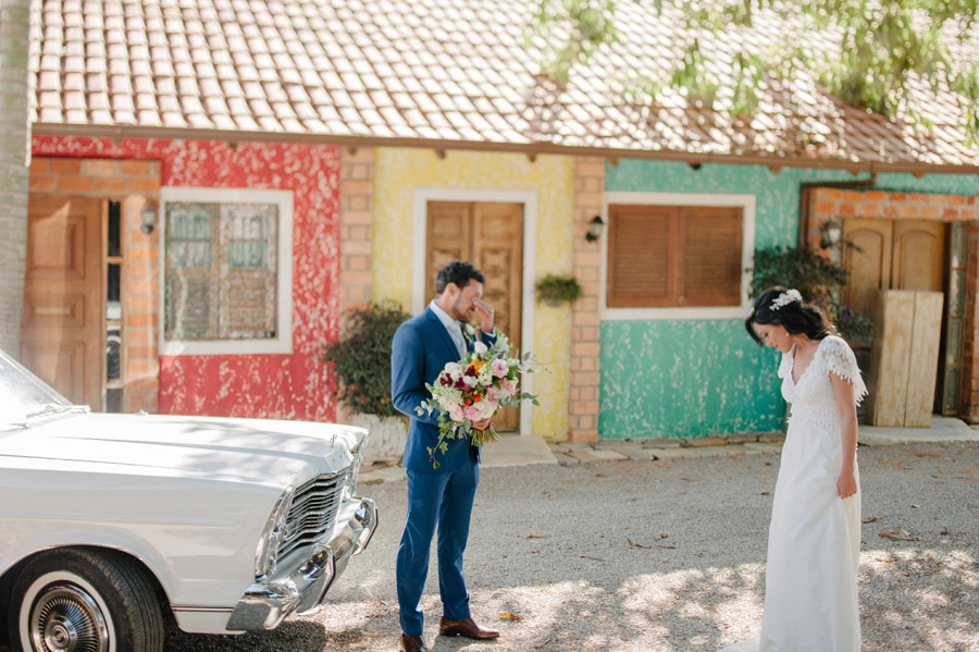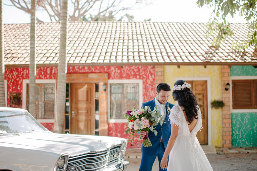 A Lívia e o Adriano sonhavam com uma celebração que realmente refletisse a sua personalidade. Assim, escolheram se casar em um jardim, ao ar livre em meio à natureza, em um local com clima rústico/vintage. A Lívia conta que acompanharam de perto cada decisão, principalmente na decoração pois queriam criar uma atmosfera alegre, colorida e leve.