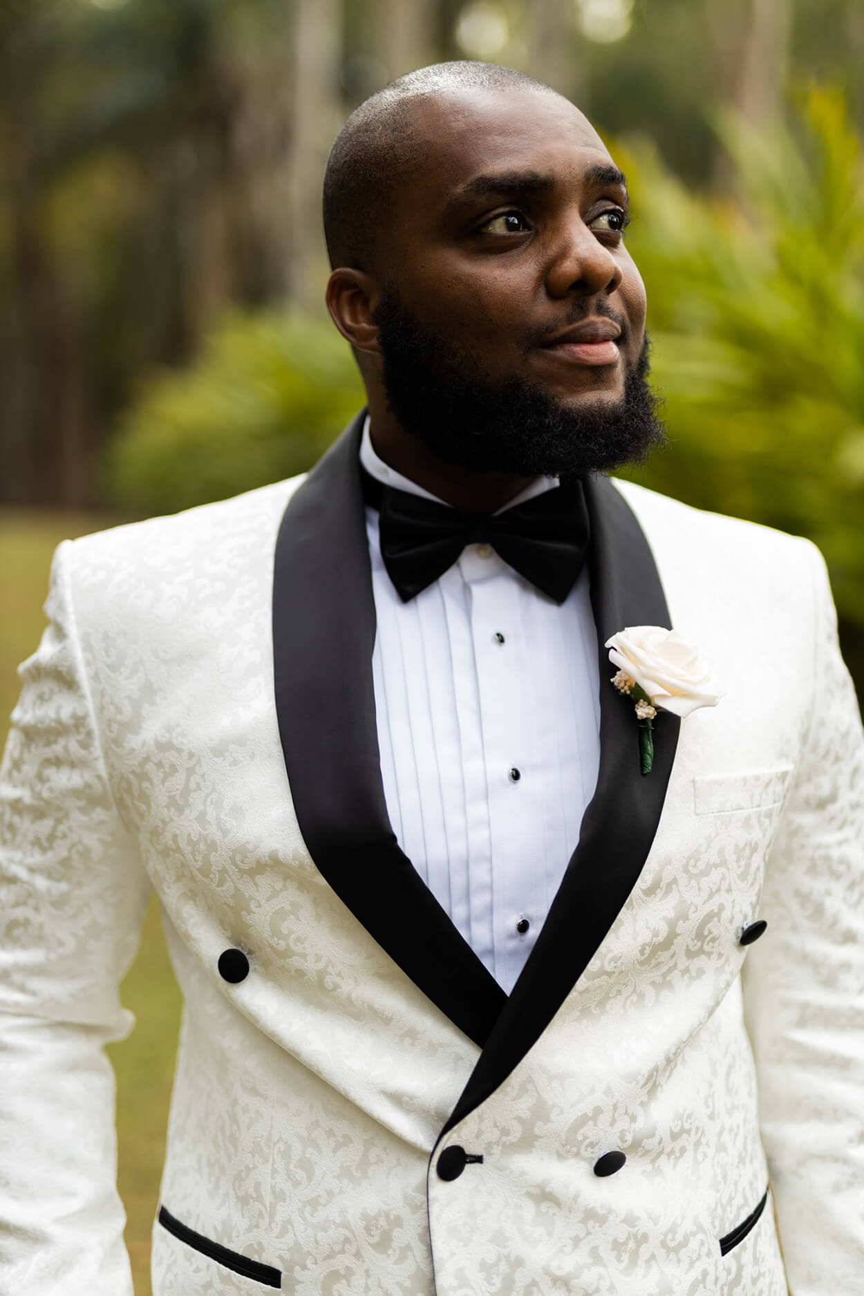 Quem disse que o branco é exclusividade da noiva? Elom escolheu um smoking branco com uma estampa floral levemente cintilante. E, se repararmos bem na escolha do relógio e do calçado, podemos enxergar um mix do estilo clássico mas com referências bem modernas.