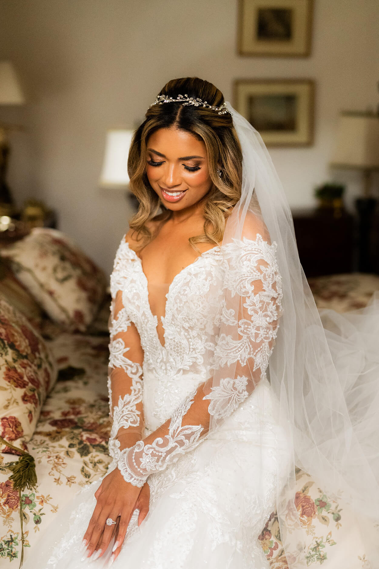 A Tati marcou presença com seu vestido sereia, um modelo com muito volume, bordados e um caimento incrível.