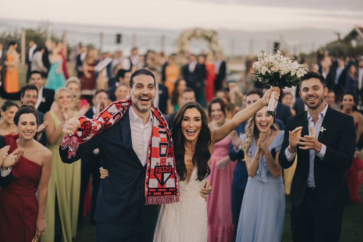 É difícil dizer qual momento mais acelera o coração de uma noiva. Mas a Mariana nos contou que começou a se emocionar logo na entrada com a sua mãe, ao som de “Sentir”. Já os votos do marido pegaram todos de surpresa com suas palavras tão doces. “Os votos do meu marido foram muito emocionantes. Simplesmente perfeito, só quem estava lá para ver e sentir…”