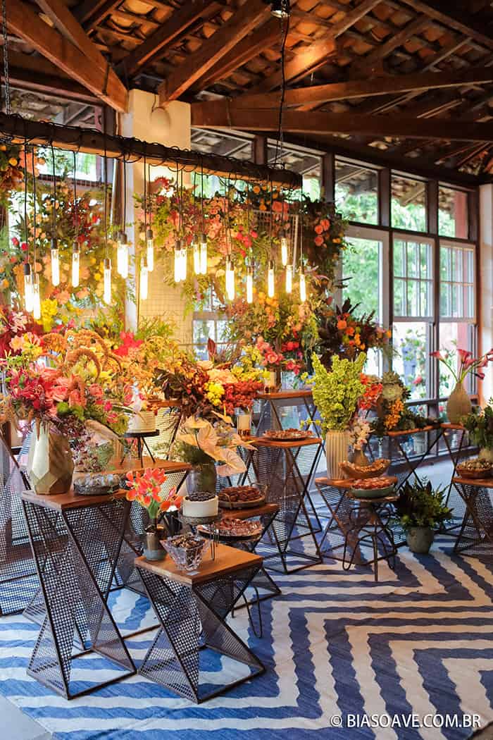 A Priscila e o Mauricio sempre quiseram casar em fazenda, e a proposta da decoração se baseou nessa linha rústica e leve. A Pri queria fazer bom uso do verde que a fazenda tinha de sobra e acrescentar cores leves. Mas não seguiram nenhuma paleta especificamente.