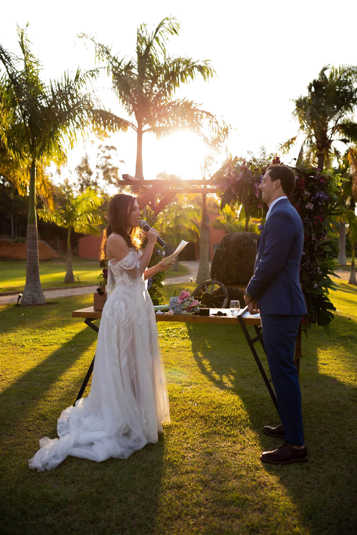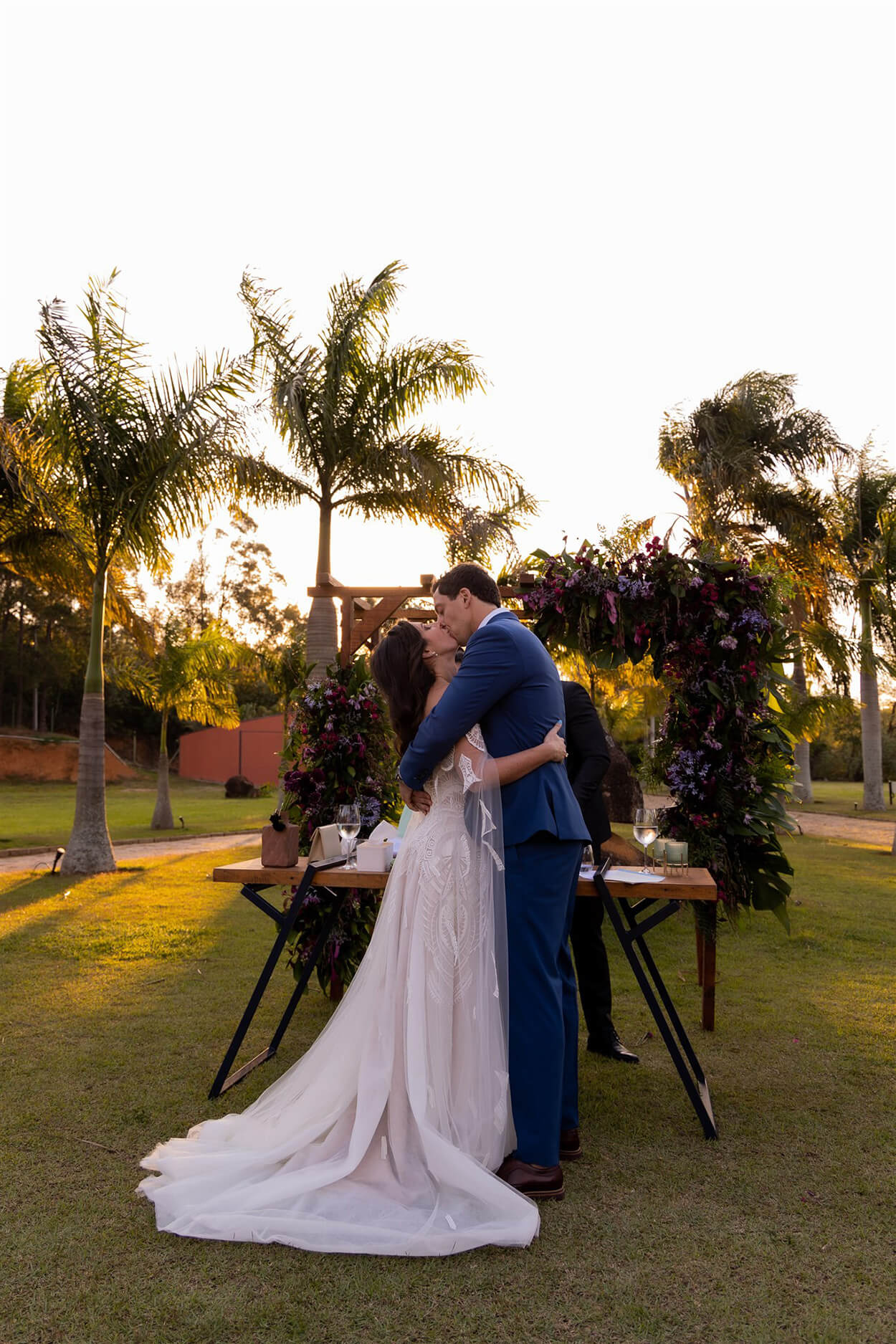 Às 16:30h, os noivos foram recebidos na cerimônia não só pelas pessoas mais queridas em suas vidas, mas também pelo brilho do sol já no final da tarde. Mas se engana quem pensa que o grande dia durou pouco, a festa adentrou a noite e só encerrou depois das 2h da manhã!