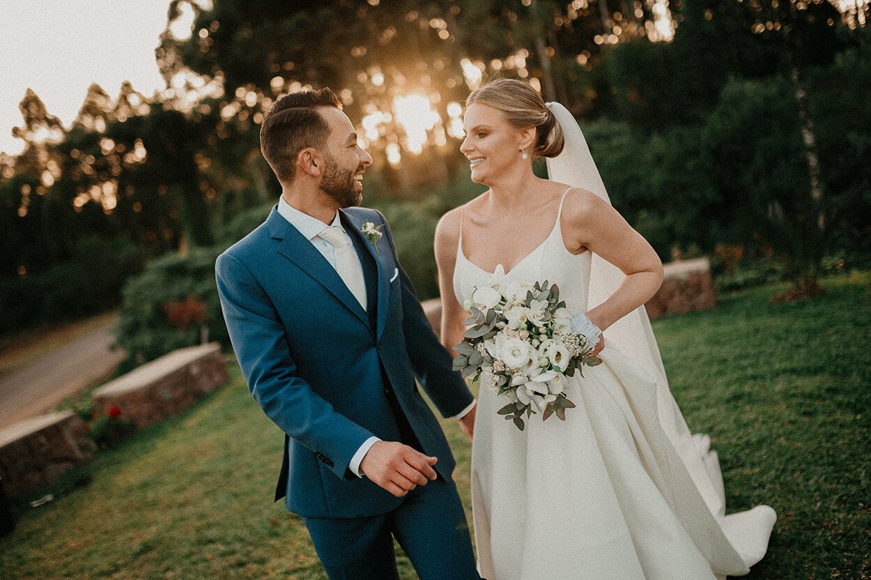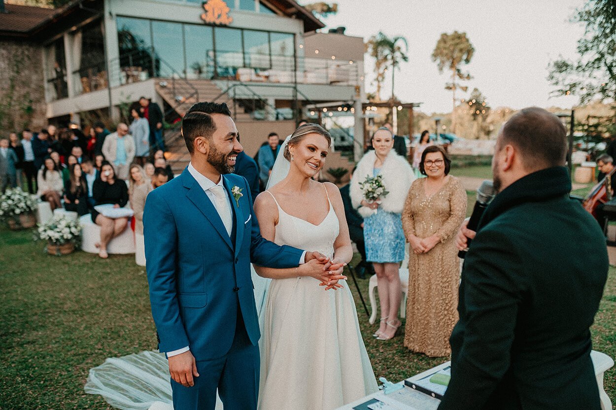 Por fim, o ensaio quase ao pôr do sol revela um clima descontraído no jardim. Dá para ver no sorriso do casal que eles amaram cada segundo da sua festa!
