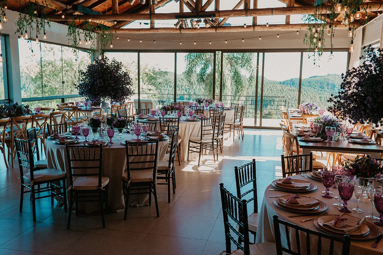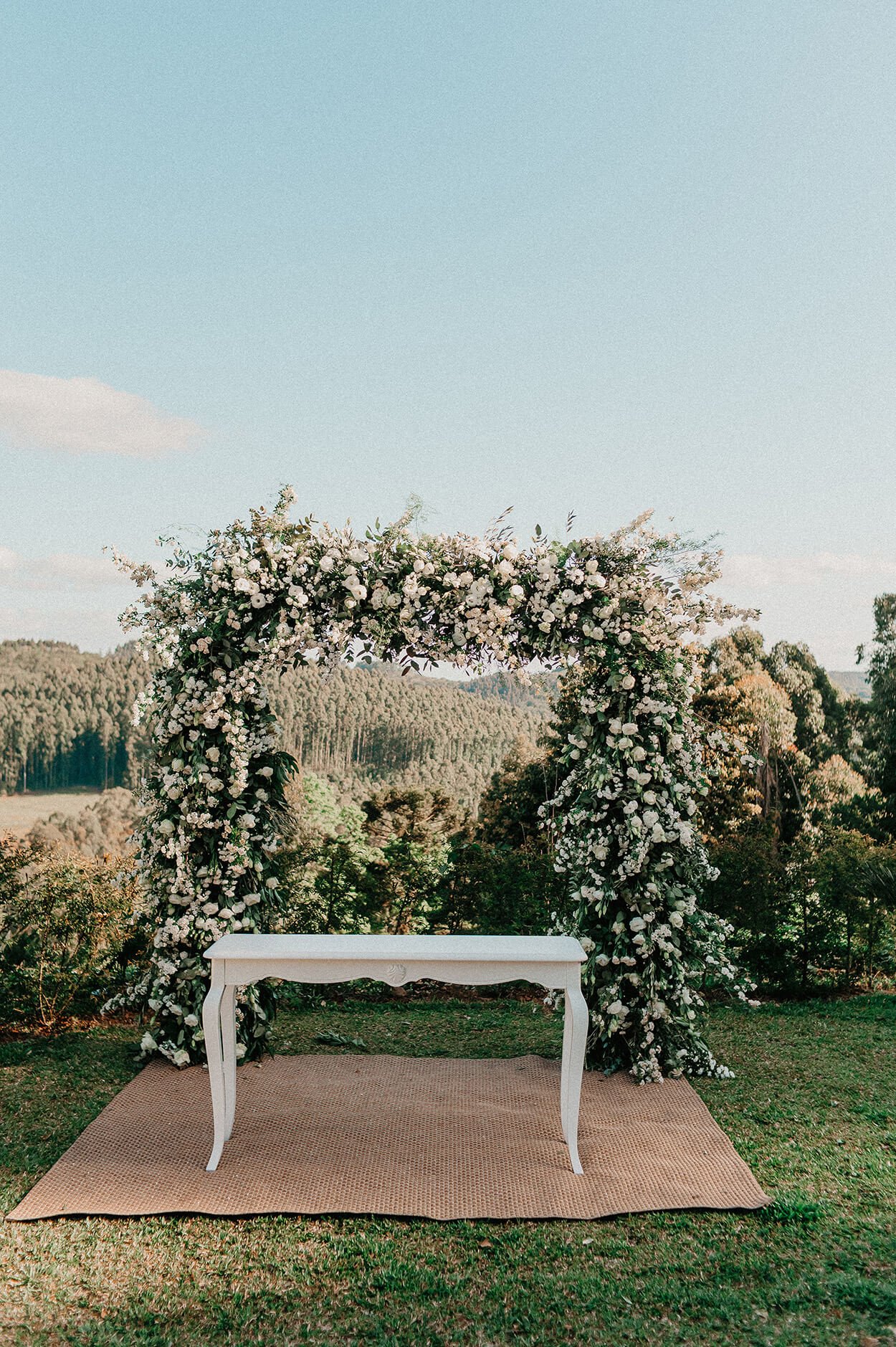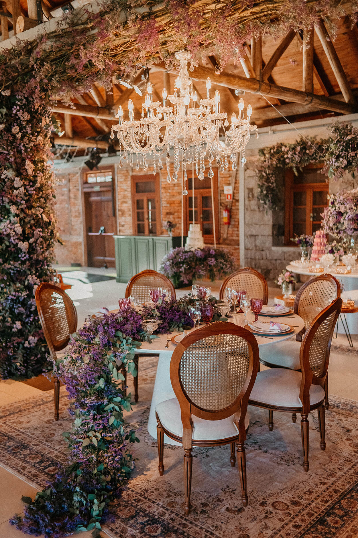 Os arranjos florais são o ponto alto da decoração, não tem como negar! Eles foram projetados para emoldurar todo o espaço com o seu charme e exuberância. E o resultado ficou incrível!