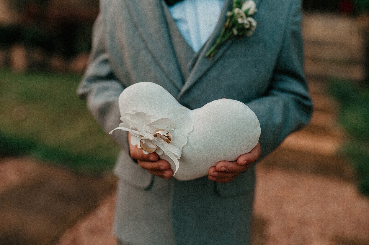 Só de reparar no porta alianças já deu para notar que cada detalhe foi bem pensado. A Gesseli não poderia ter escolhido um modelo de vestido mais a cara dela!