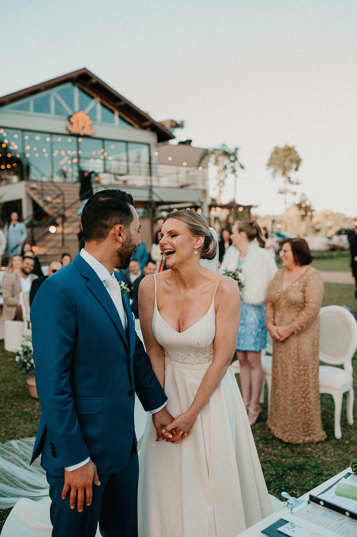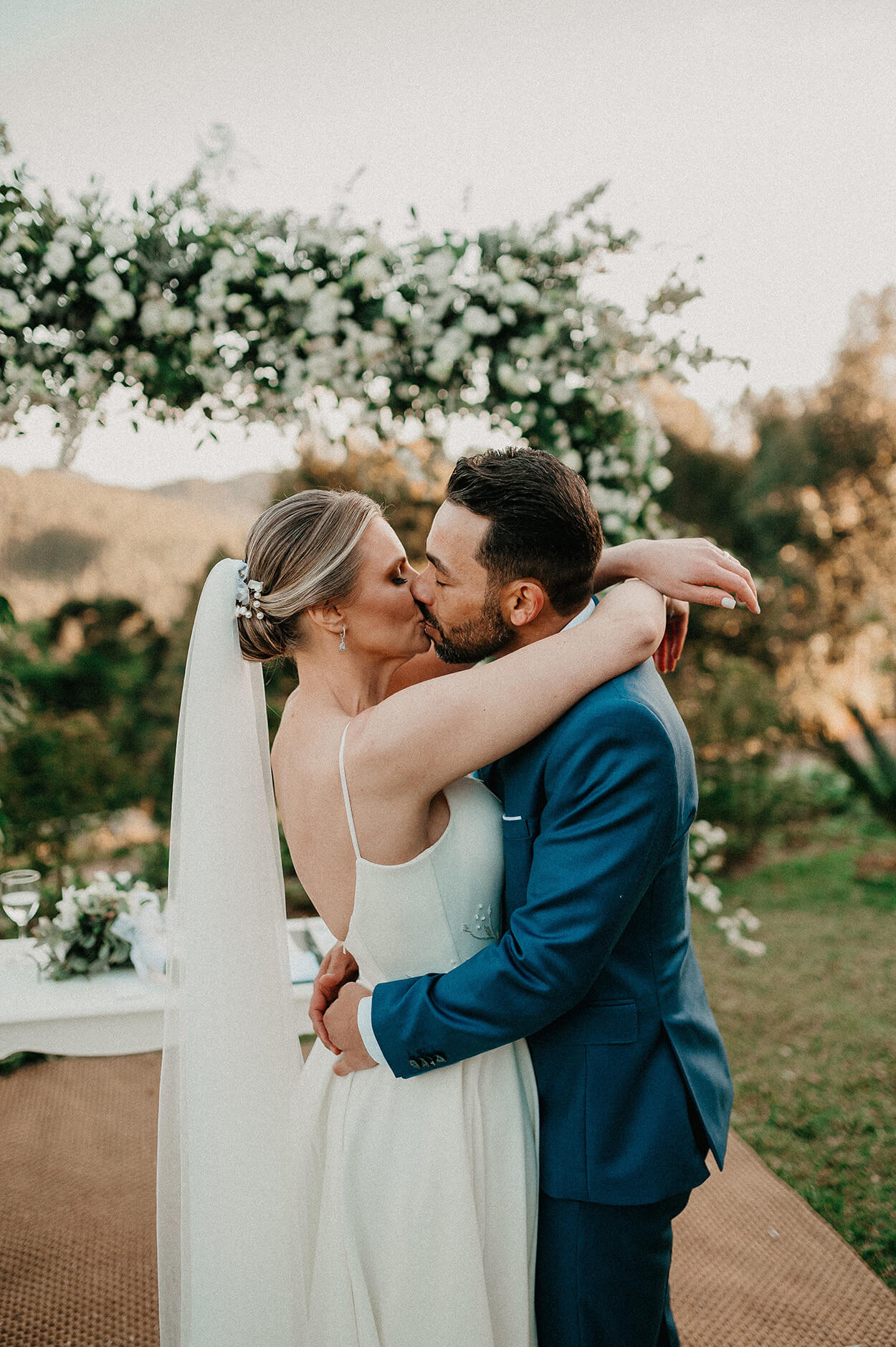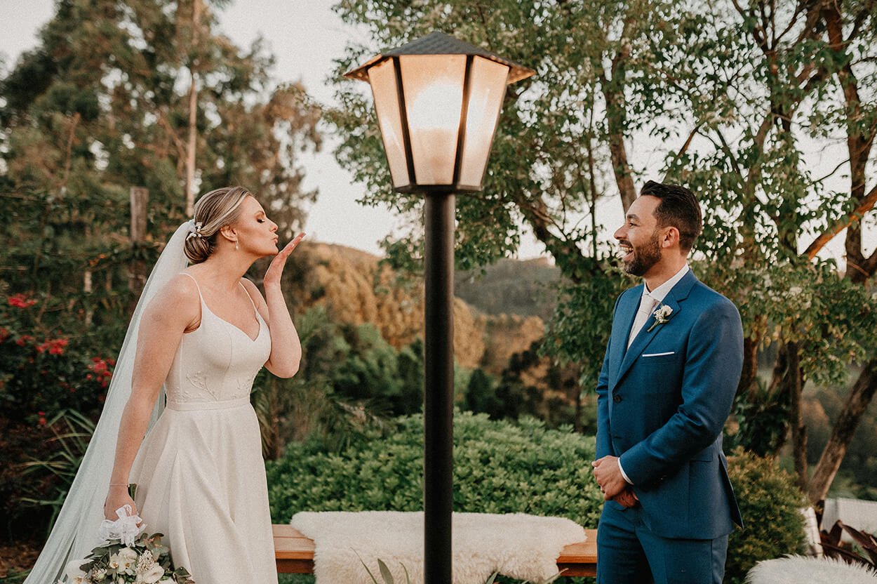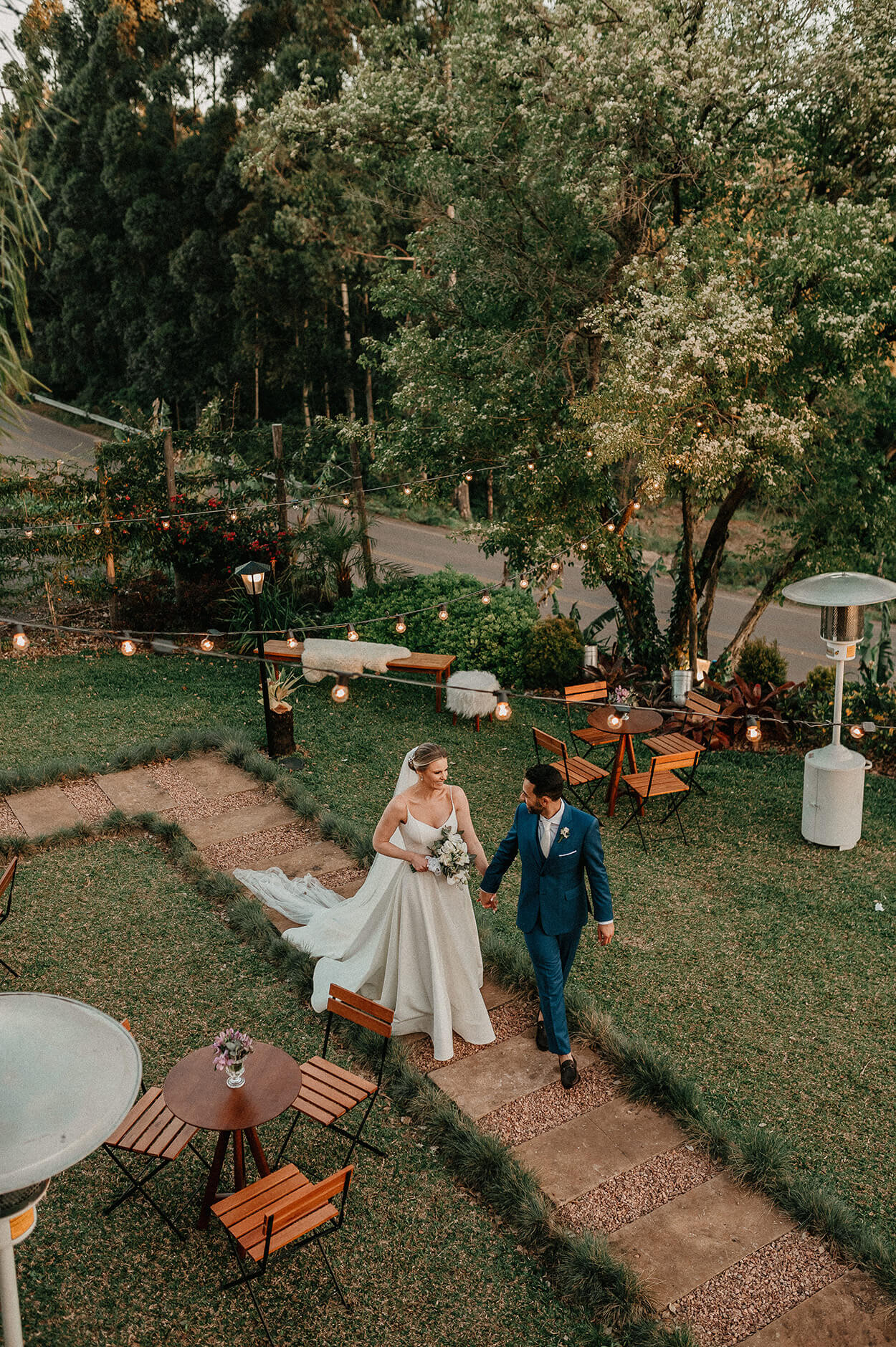 Por fim, o ensaio quase ao pôr do sol revela um clima descontraído no jardim. Dá para ver no sorriso do casal que eles amaram cada segundo da sua festa!