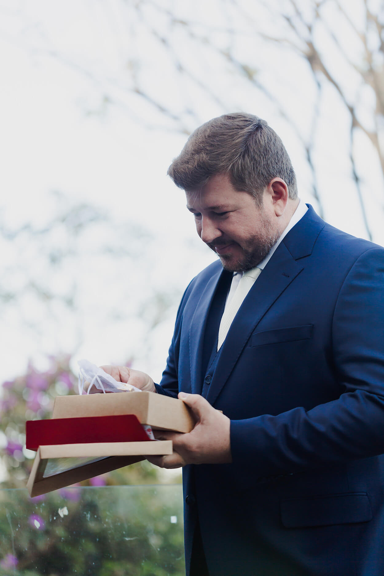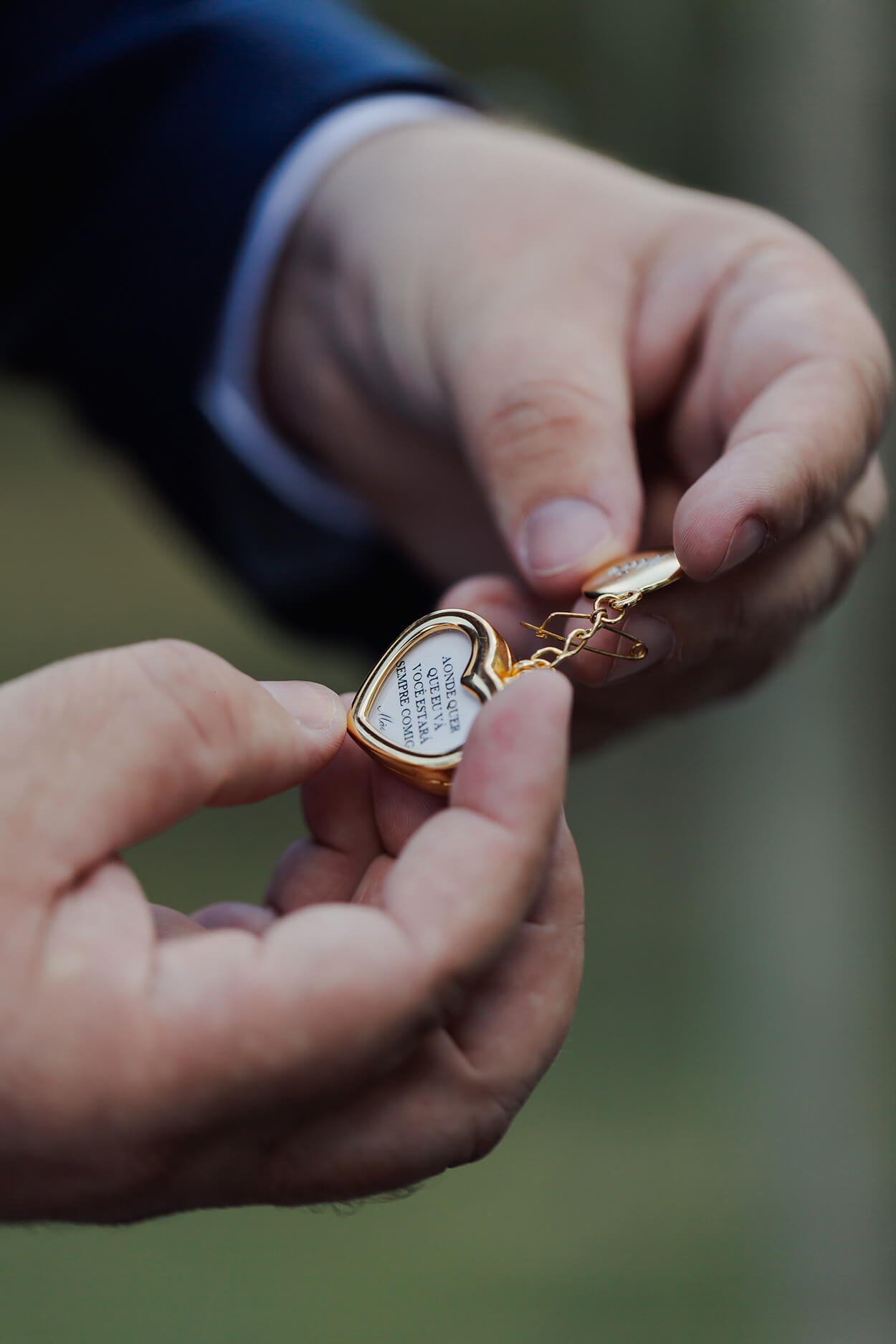 Nem sempre quem nós mais amamos pode estar ao nosso lado nos momentos importantes, não é? O noivo foi surpreendido com um relicário com a foto de sua mãe. Não é segredo pra ninguém, nós amamos esse tipo de homenagem!