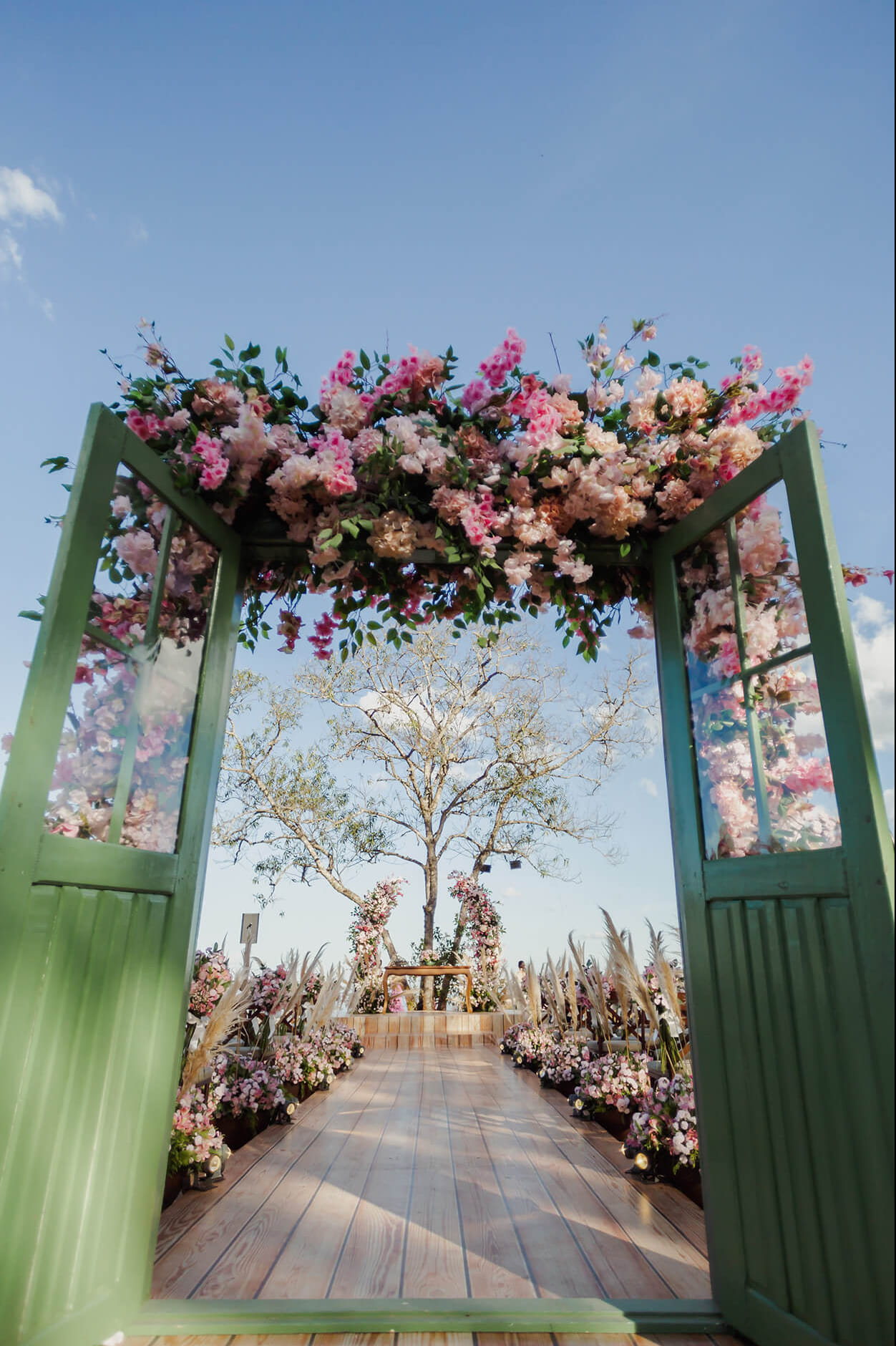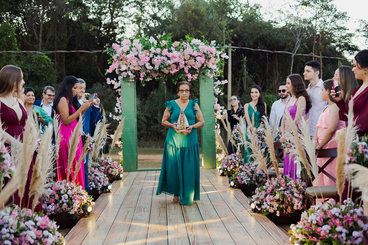 Cerimônia romântica, leve e cor-de-rosa no campo vai te surpreender
