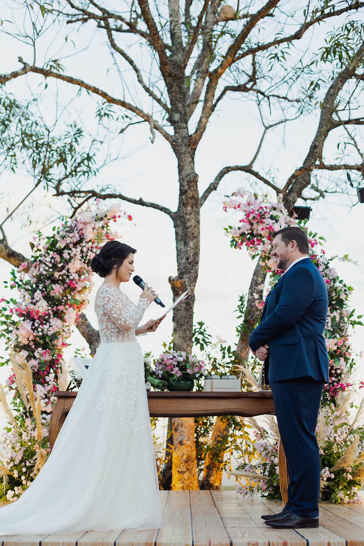 Uma das maiores vantagens de um casamento no campo é poder explorar a beleza natural para construir um cenário dos sonhos. E vamos combinar que trocar os votos de amor eterno sob uma árvore cria um clima todo especial para a cerimônia.