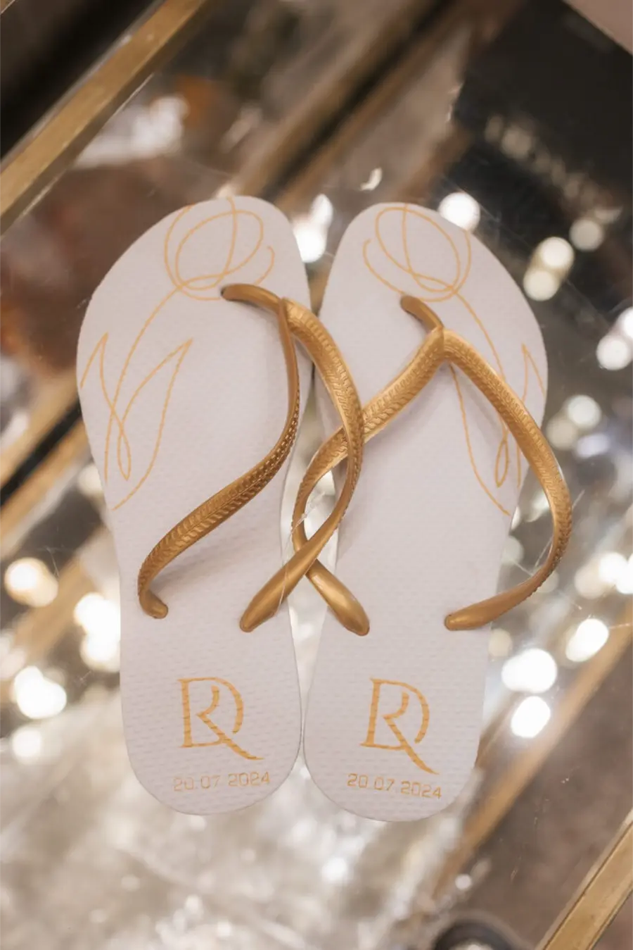 O chinelo personalizado já virou queridinho nos casamentos.