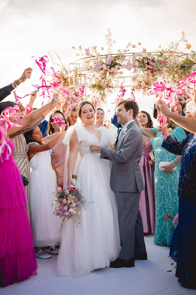 A Larissa ficou uma verdadeira princesa! Simplesmente ficamos encantada com esse detalhe nos ombros, o tecido dá um ar esvoaçante e destaca ainda mais o colo.