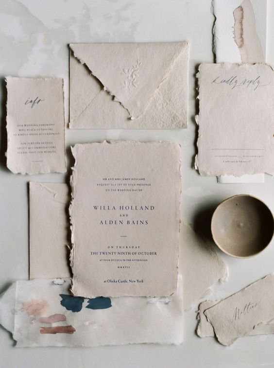 Este efeito de papel feito a mão é muito querido entre os noivos, e o Papel Algodão realiza esta função perfeitamente!