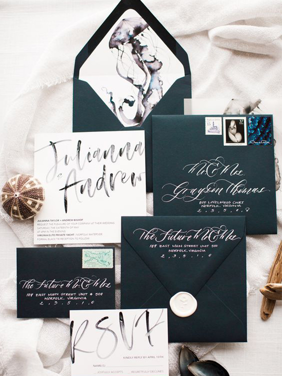 A caligrafia é um serviço artístico que muitos noivos amam, isso porque faz com que os convidados sintam uma proximidade dos noivos com o acabamento de escrita à mão. Além disso, muitos noivos também optam por fontes do próprio convite também inspiradas em escrita à mão, para deixar o convite sofisticado e intimista.
