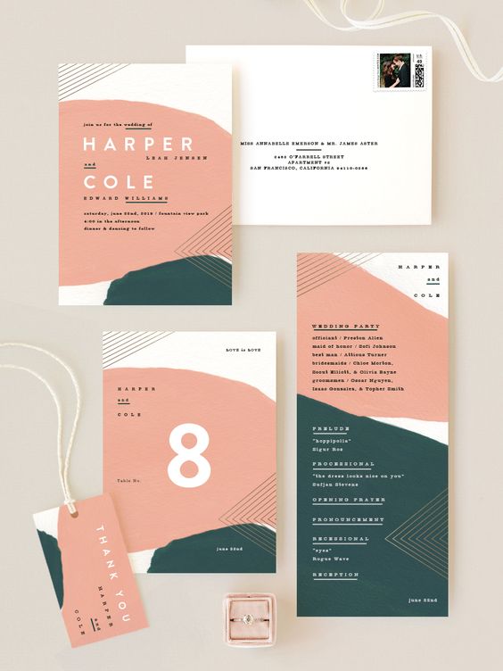 Somos fãs de casamentos urbanos aqui no Lápis. Para combinar com a vibe da arquitetura das grandes metrópoles, escolha os convites com design criativos e uma forte pegada artística e contemporânea com fontes ousadas e modernas, linhas limpas e uma variedade de cores complementares.