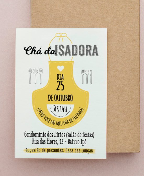 De repente você pode dividir e fazer o convite impresso para as pessoas que estão próximas e convite digital para quem está longe, mas que certamente estará no seu chá de panela.