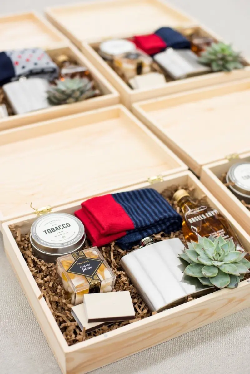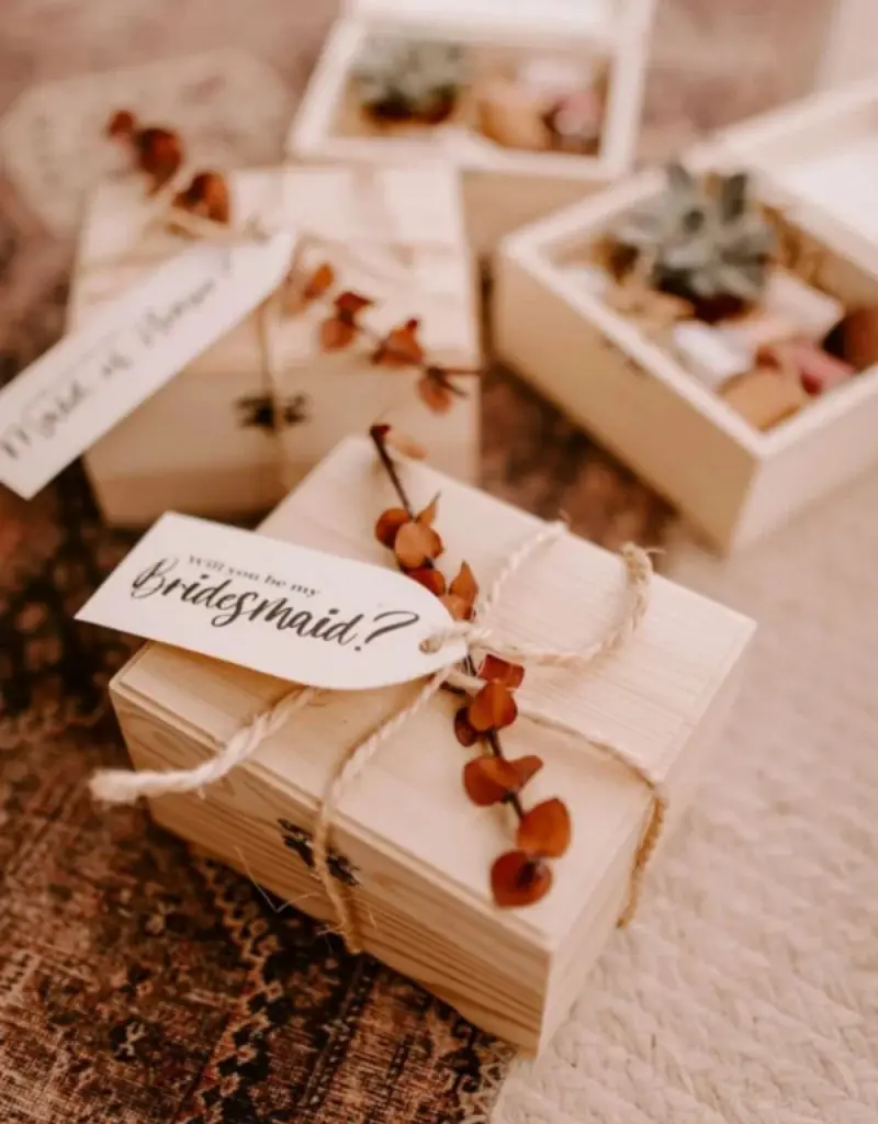 Para deixar ainda mais especial o convite, os noivos podem colocar fotos de momentos que tiveram com o padrinho e madrinha de casamento em uma caixinha. Ainda há outros opções como velas aromáticas, gostosuras-para comer e/ou beber- e plantinhas que sempre estão em alta!