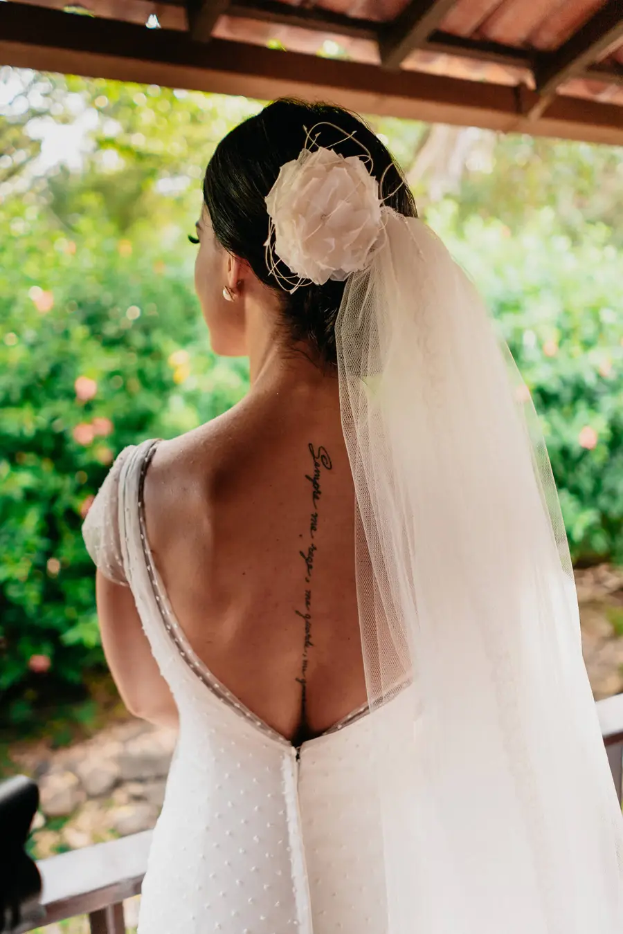 - Harmonia com acessórios: combina bem com tiaras, véus, grinaldas, flores naturais e presilhas.