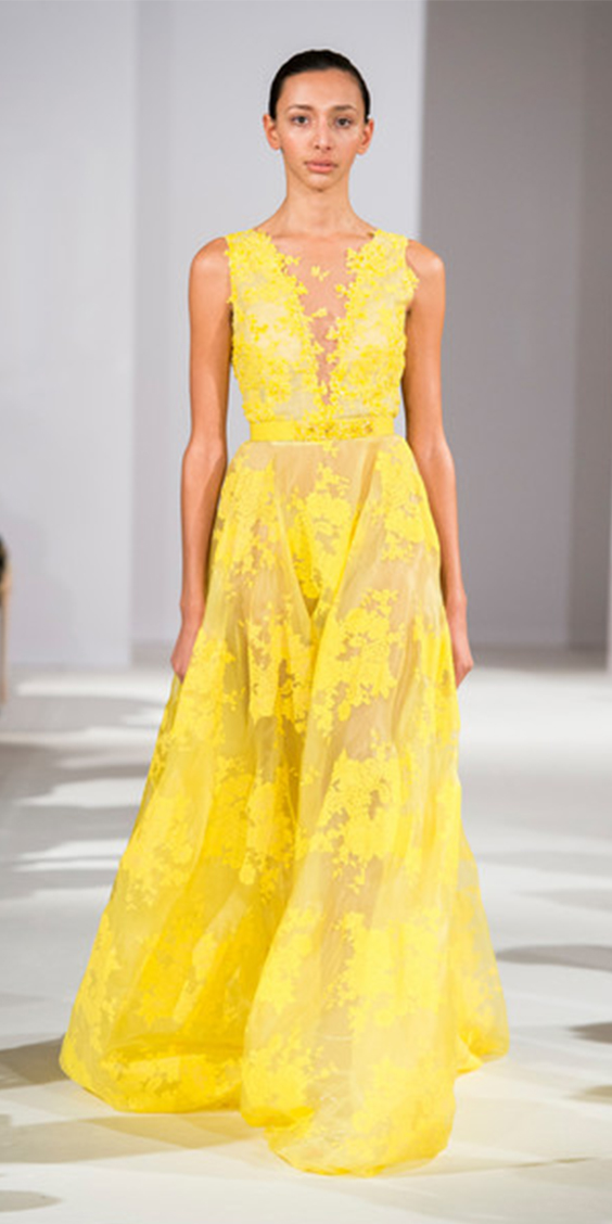 O que vai deixar esta combinação atual é usar as duas cores em elementos diferentes, e abusar das nuances de cada um para complementar o todo. Quer algumas ideias? Elementos de arquitetura como concreto, vigas, metais, os prateados em geral serão o fundo para sofás, almofadas ou toalhas em tons de amarelo, assim como limões sicilianos e flores (mimosas, tulipas, rosas, astromélias, lírios, gérberas, cravos, etc.) serão usados para compor a decoração. O vestido branco da noiva pode ser complementado com um lindo buquê de noiva em tons amarelos, ocre, mostarda e alaranjados combinando com o terno cinza claro do noivo. Abuse dos metálicos também, eles continuam atuais- pense nos vestidos de noiva com glitter, objetos de decoração em prata e talheres! Ahhh, o verde das folhagens complementa este duo de forma bastante elegante.