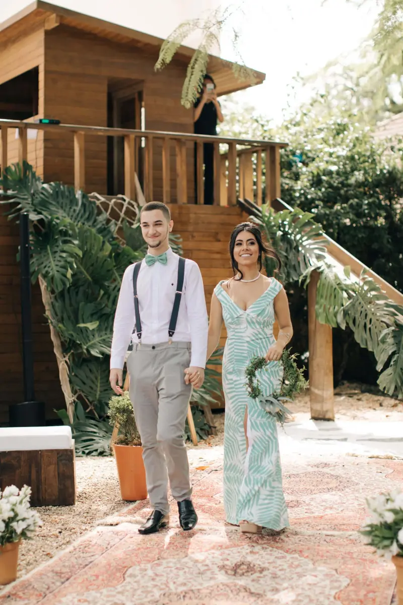 Em cerimônias mais descontraídas e intimistas como micro wedding, o cortejo de casamento segue o mesmo estilo, mas não é necessário nenhuma rigidez ou formalidade.