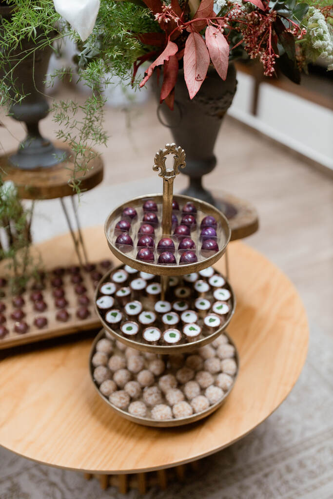 Cada casal ganhou uma bag bordada da P&W Presentes, super versátil e perfeita pro dia a dia. Além disso, um kit delicioso da Schokolade-bem-casados com bem-casado folhado, bem-casado tradicional e bem-casado de bolo húngaro – uma verdadeira explosão de sabores.