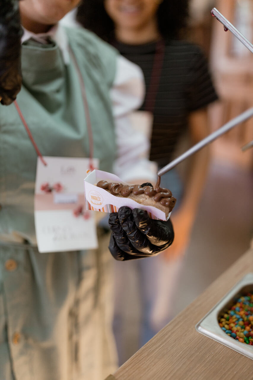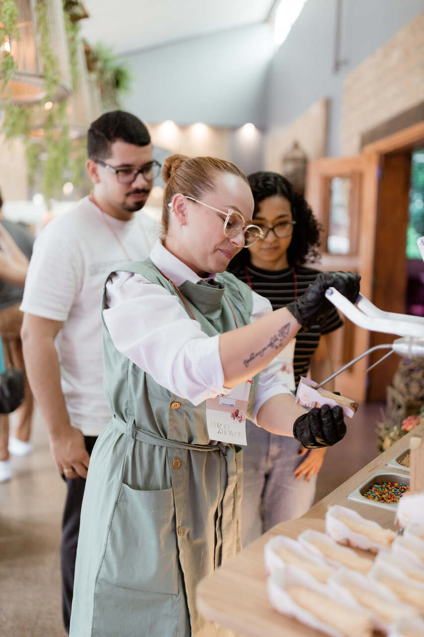 Além da gastronomia impecável do Buffet Capricho , que incluiu dadinho de tapioca, bobó de camarão, massa verde e uma marmitinha de filé mignon com purê, os noivos ainda se deliciaram com os incríveis Churros da Mamy, preparados na hora, com sabores e toppings variados que conquistaram todo mundo.