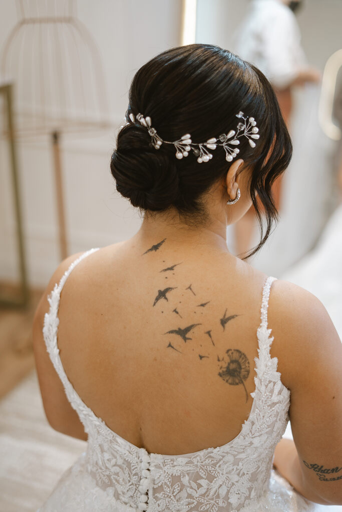noiva com vestido com decote em v e alças finas