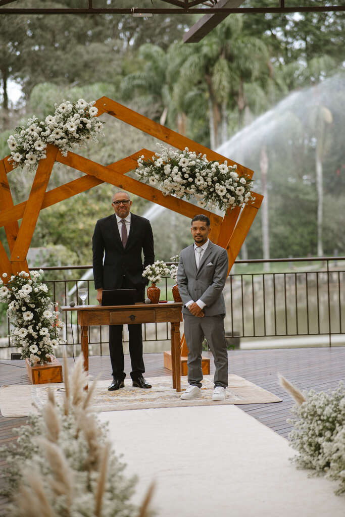 Aproveitando o tema, você não precisa de uma ideia mirabolante para diferenciar os padrinhos do noivo, basta escolher um outro tom para o terno e trocar o tipo da gravata.