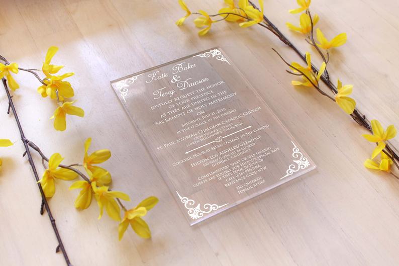 Além de placas de sinalização, porta-retratos, porta alianças, estruturas para flores, mapas de assentos, rótulos de bebidas, cake toppers até convites, base para bolos, backdrops e chuppahs. E por que não usar o acrílico como altar na cerimônia de casamento? Certamente, com uma iluminação de casamento adequada dará aquele toque deslumbrante.