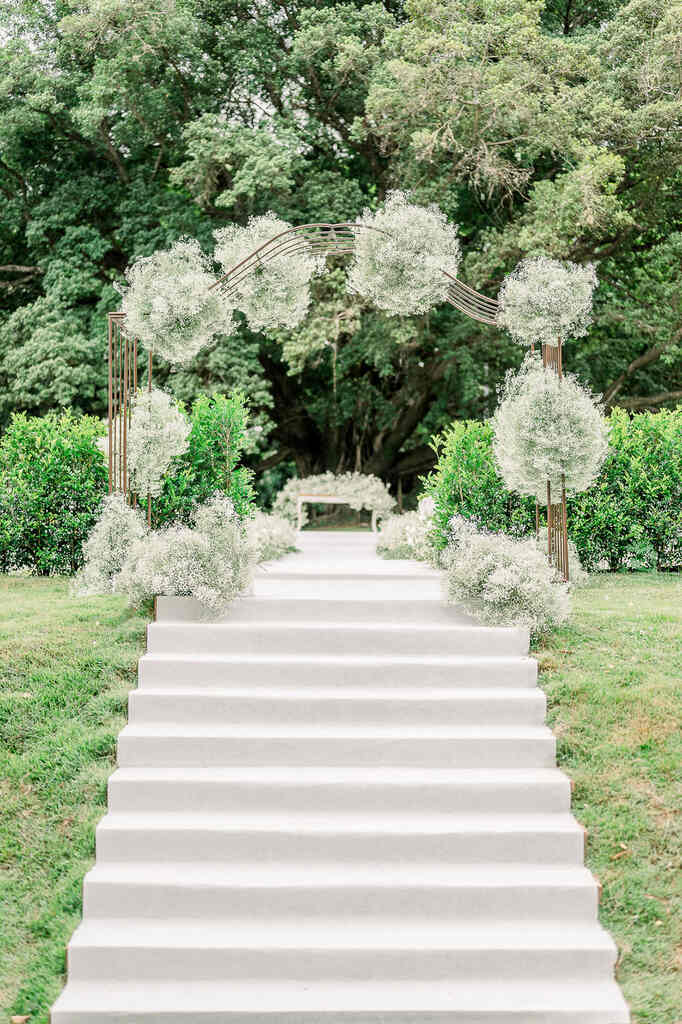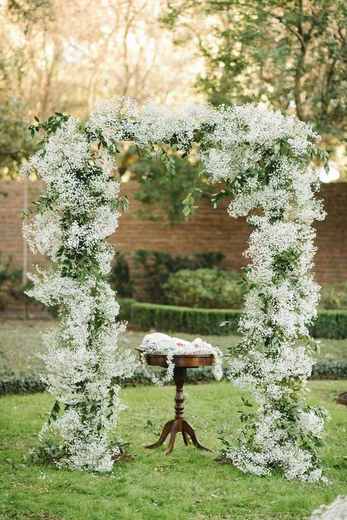A gipsofila é conhecida por acompanhar flores brancas e dar volume aos arranjos. Mas não se limita a isso, já que nos últimos anos o mosquitinho também tem sido usado sozinho em casamentos elegantes.