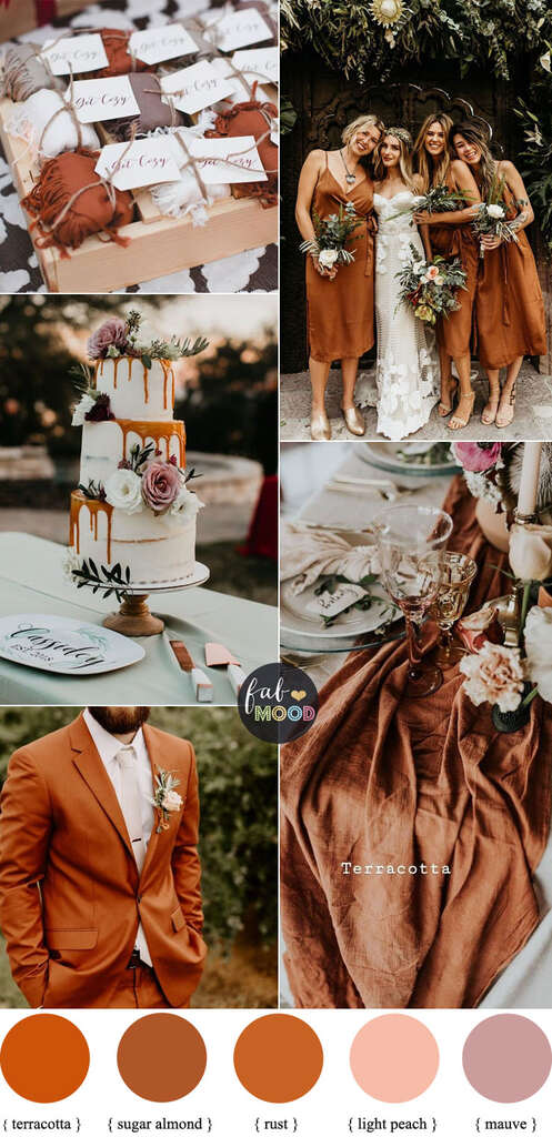 Cores terrosas são perfeitas para um casamento de dia com uma proposta boho ou rústica. De maneira geral, cores quentes caem muito bem com ambientes ao ar livre.